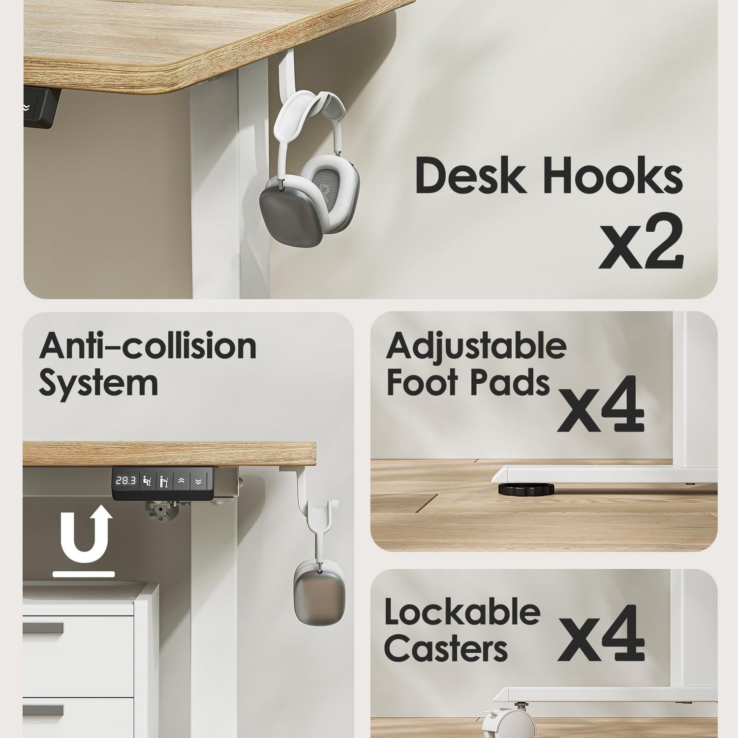 - A Comfortable Workspace - The height adjustable desk features a scratch-resistant and solid desktop, with smooth edges for collision protection. The spacious desktop can support a wide range of office equipment, making a comfortable and productive workspace for you.