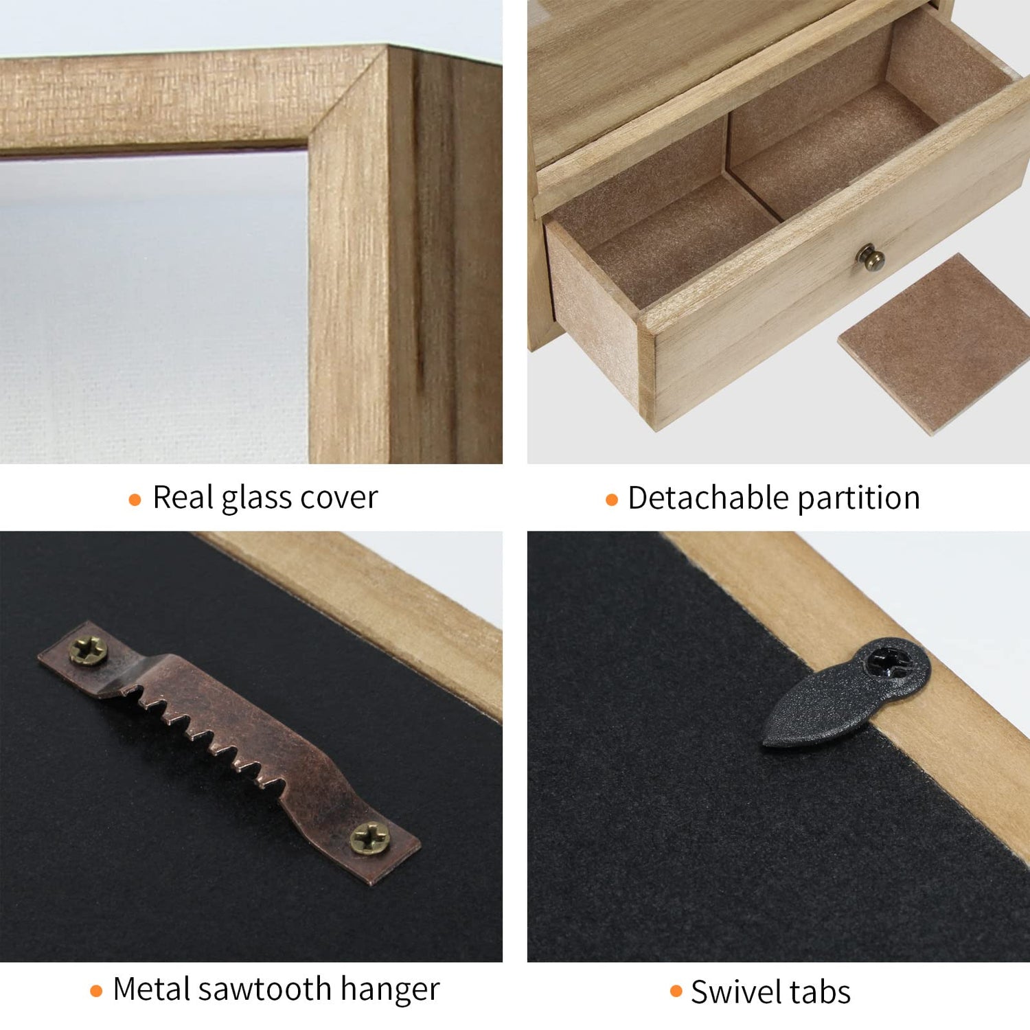 TJ.MOREE Deep Shadow Box Frame with Drawer, Shadowbox Display Case with Glass Window Picture Frame Memorabilia Bouquet Medals Military Photos Memory Box for Keepsakes