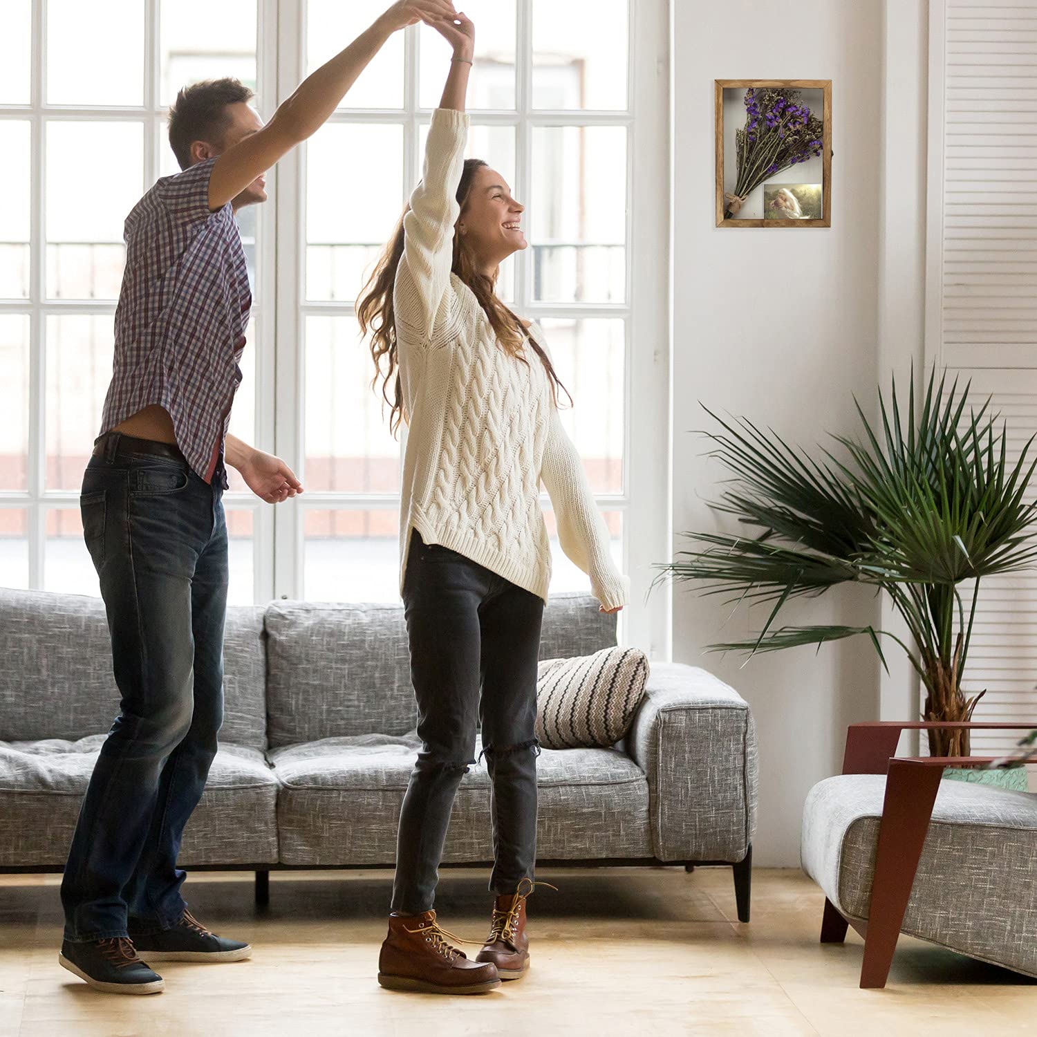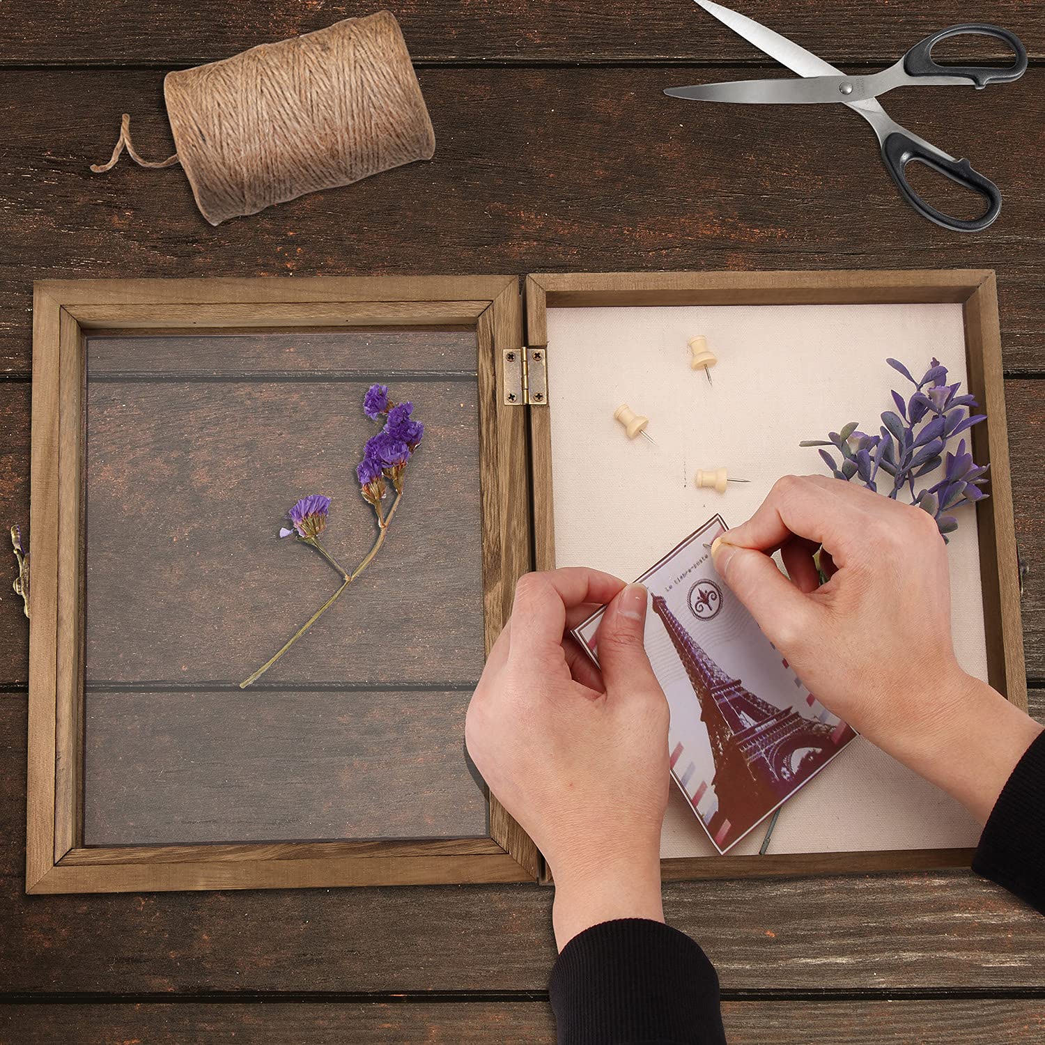 - Hinged Door - The front display door makes it easy to place or exchange items inside. The retro horn lock makes the shadow box lockable and more secure, and prevents the items inside from falling out.