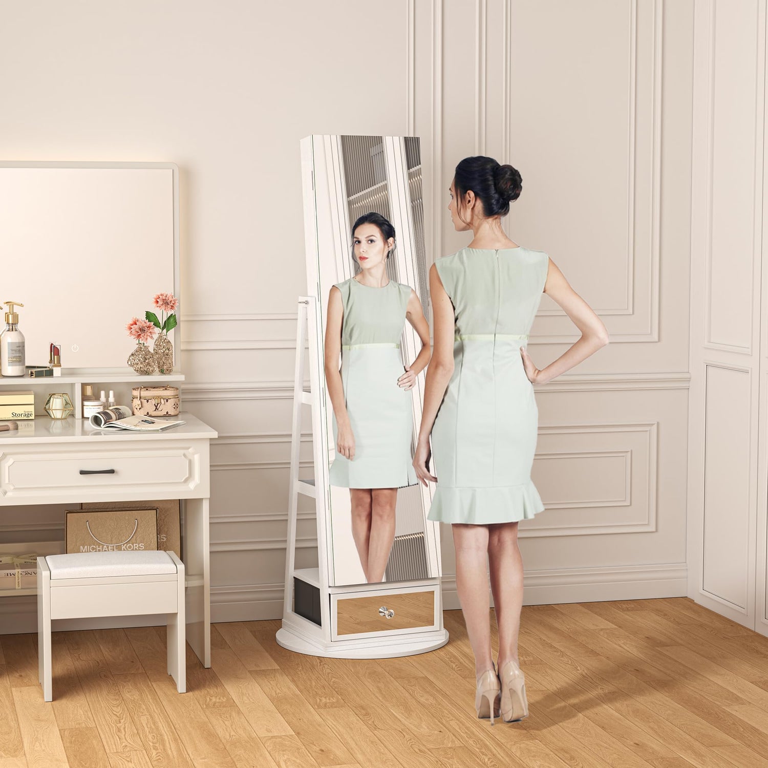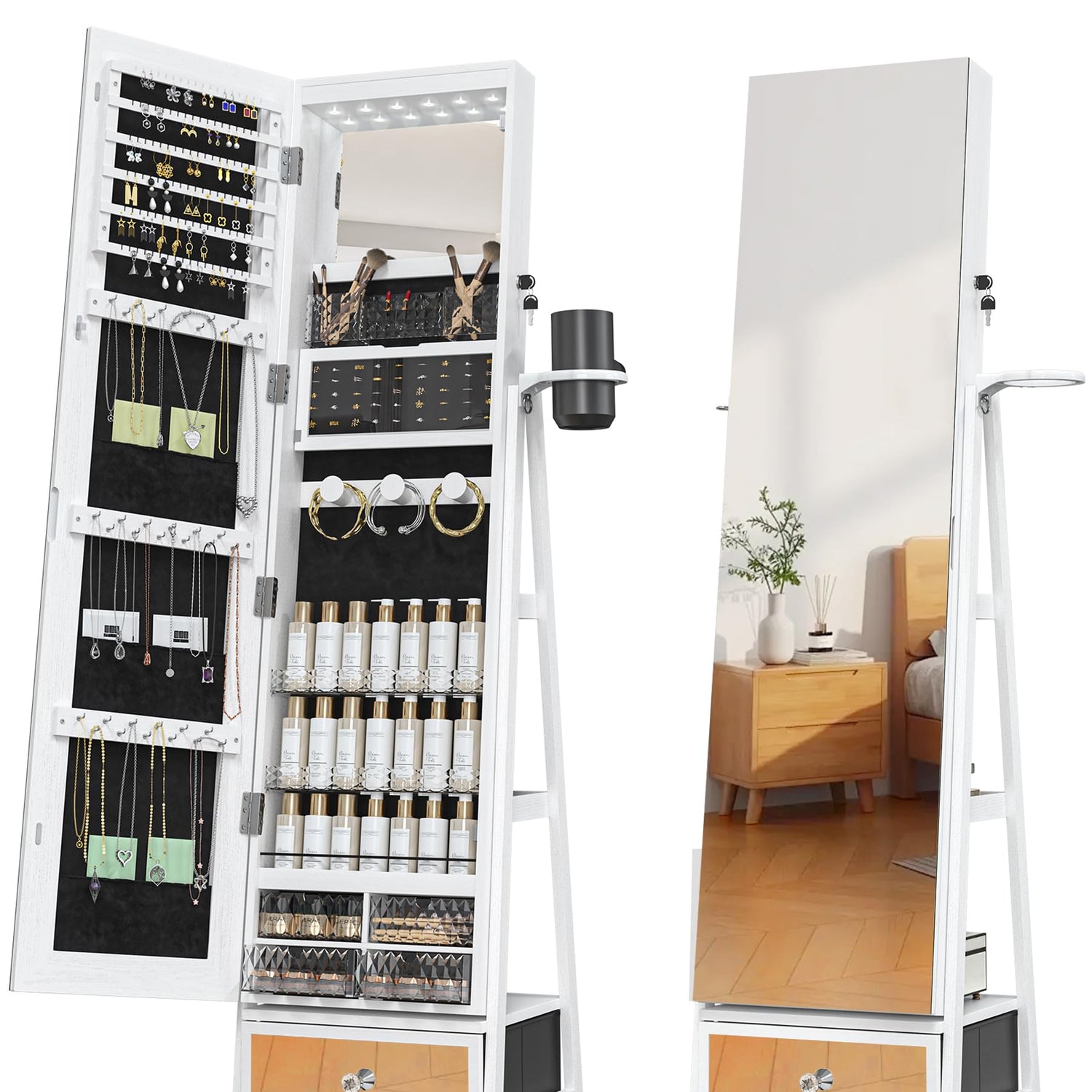 - 4 in 1 Design, Large Capacity - Our jewelry mirror cabinet combines a jewelry organizer, full-length mirror, makeup LED mirror and storage rack into one spacious unit. It's easy to select and match jewelry while checking your look. Elevate your dressing experience.
