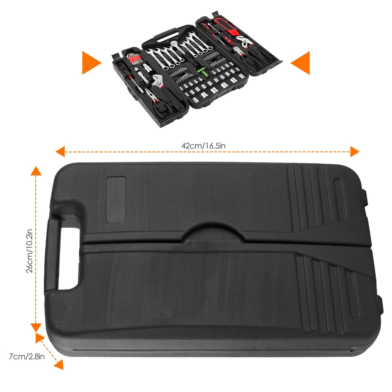 TLGREEN 95 Piece Tool Set, Tool Kit, Mechanics Tool Set, Portable Toolbox with Adjustable Wrench Pliers Socket Bits, with Plastic Toolbox, for House Apartment Garage (Red)