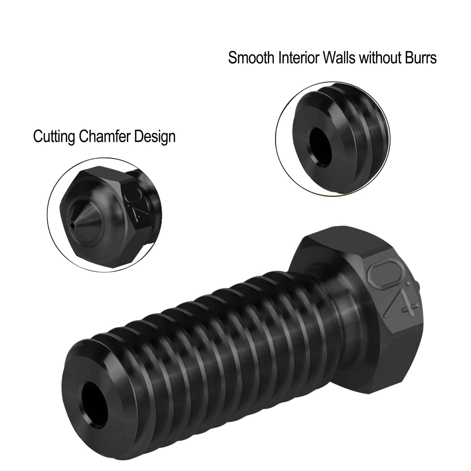 - Package includes 10 pcs 0.4mm Hardened Steel high-speed nozzles for high-speed printing.