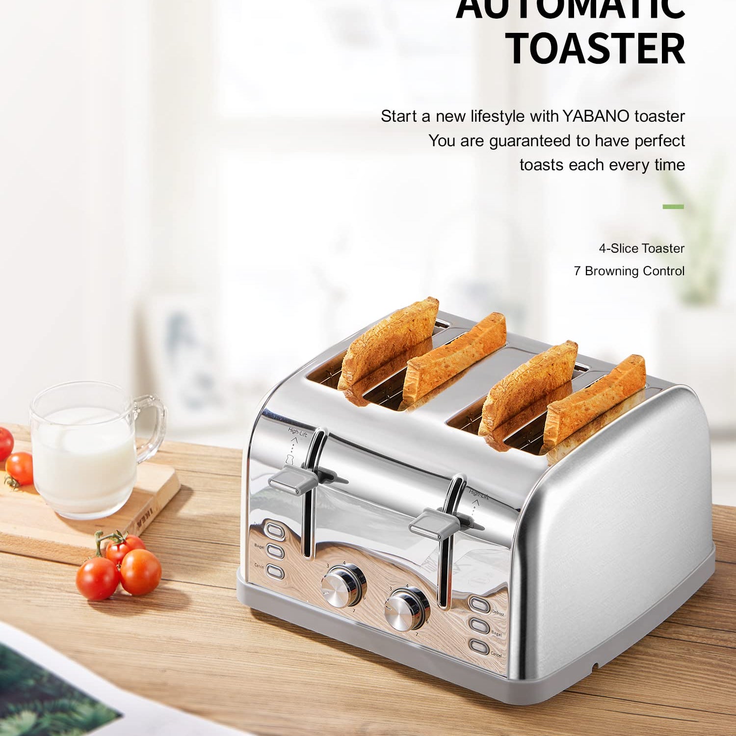 - 4 EXTRA-WIDE SLOTS - Yabano toaster was built with food grade stainless steel, comes with extra 4 wide (1.4'') slots, suitable for different slices
