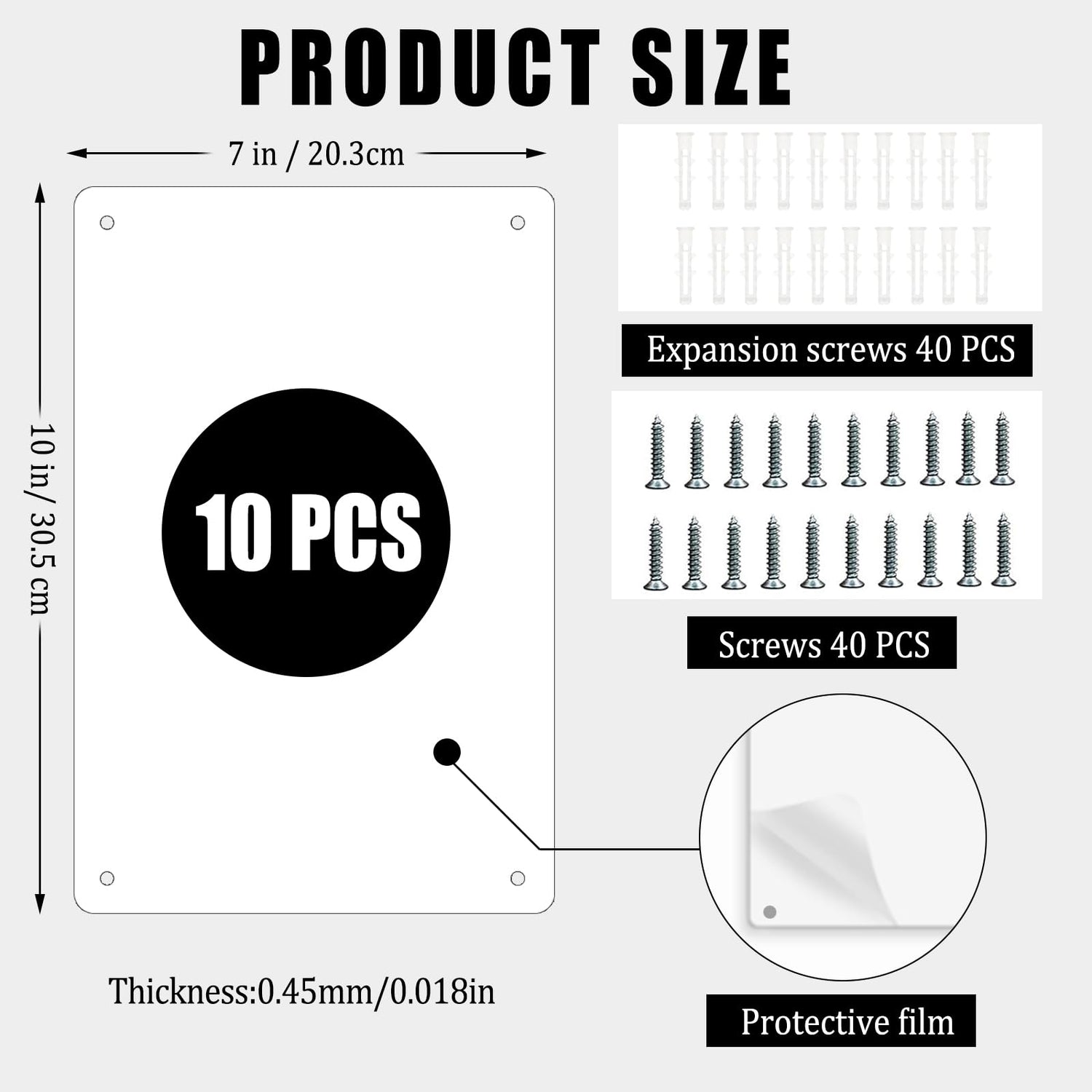 - 【Product Includes】You will get 10 pcs sublimation metal blanks with pre-drilled holes, suitable for heat transferring signs or photos once you peel off the protective film. Each aluminium sublimation sign blanks measures 7x10 inches and is 0.45 mm/0.018 inches thick. For easy installation, we also provide 40 expansion plugs with screws for hanging the sign