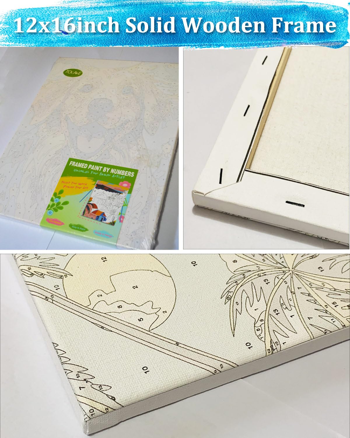 - 【High-Quality Materials】: The beach sunset framed paint by numbers kit for adults beginner Comes with premium detailed printed HD 12x16”framed canvas ,colorful paints, 3 different sized brushes,1pc canvas reference sheet with instructions and a sturdy frame, ensuring a professional finish.