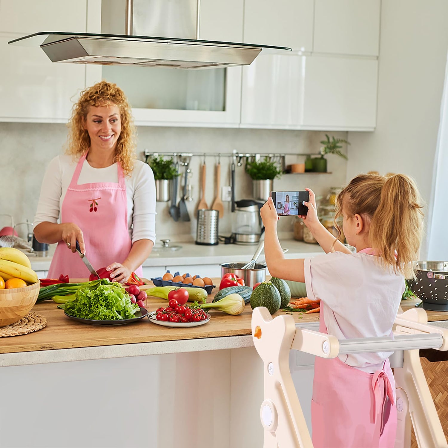 - 【Build Satisfaction】Toddler Kitchen Stool Helper can cultivate your child's independence, hands-on ability, enhance the sense of value, develop a good habit of consciously washing hands and brushing teeth, encourage your child's curiosity about cooking, baking, etc., and promote parent-child interaction.