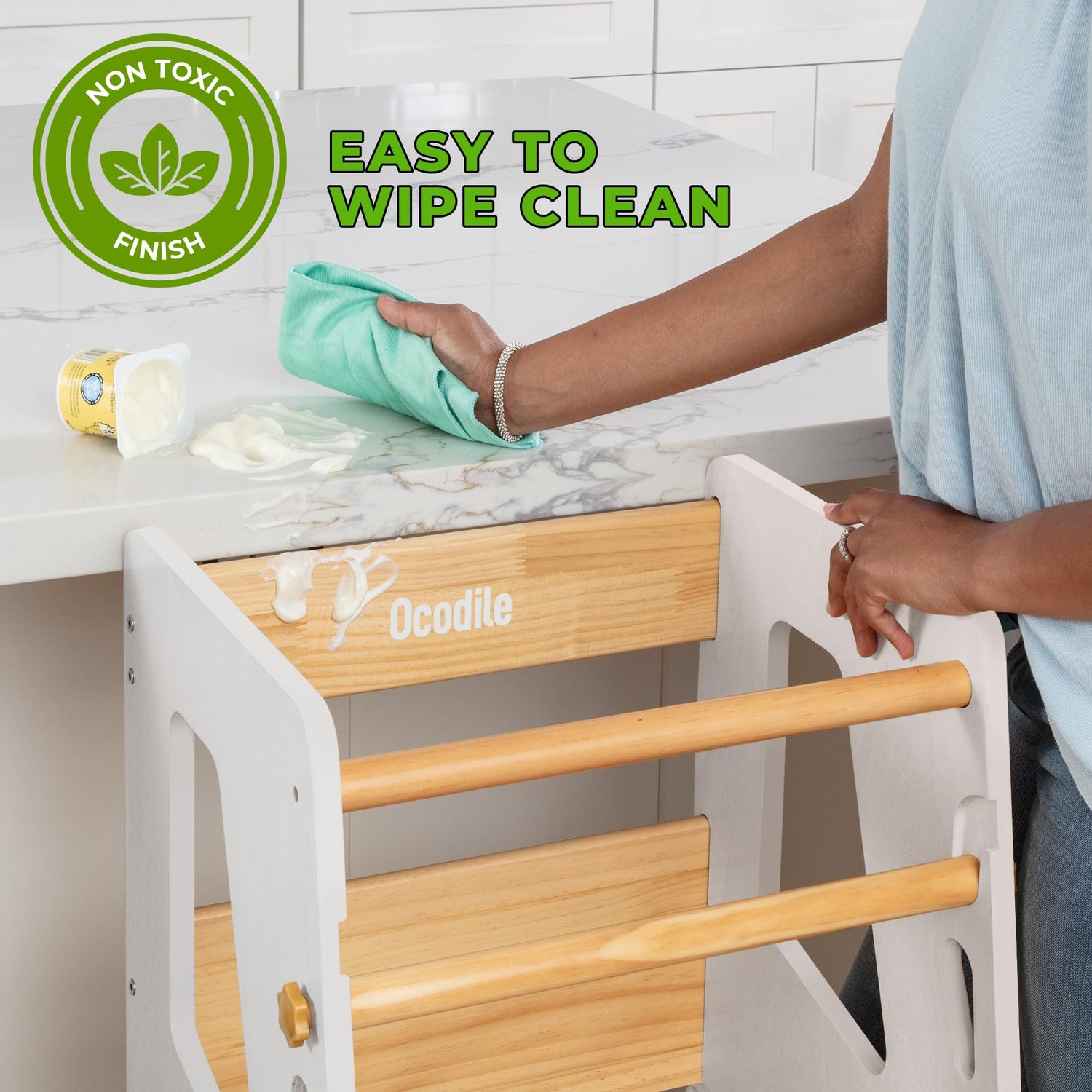 - PATENTED DESIGN: Stylish and sleek, the toddler stool for kitchen will match your home and the LO's needs to explore in a safe toddler helper stool. The removable safety bars turn this into an ideal kids stool for kitchen.