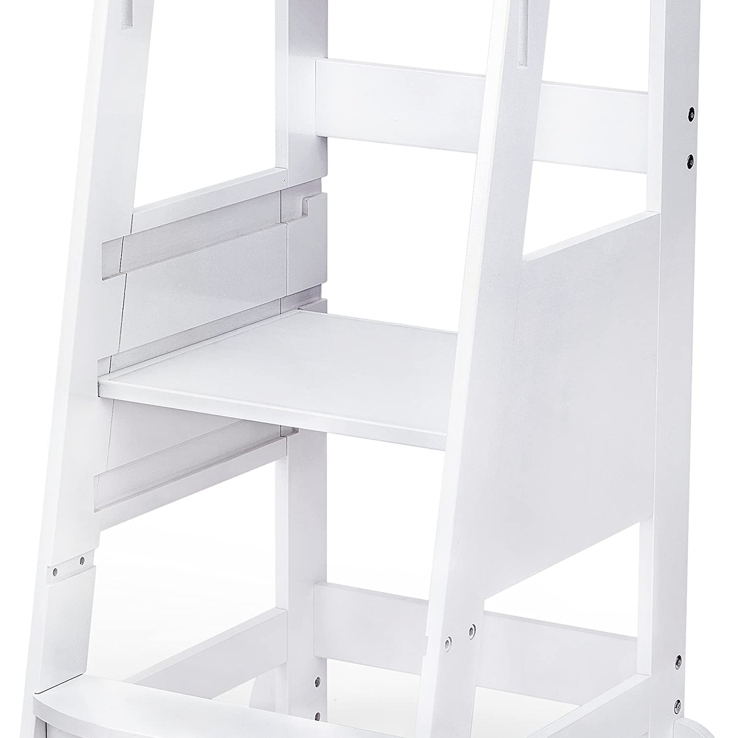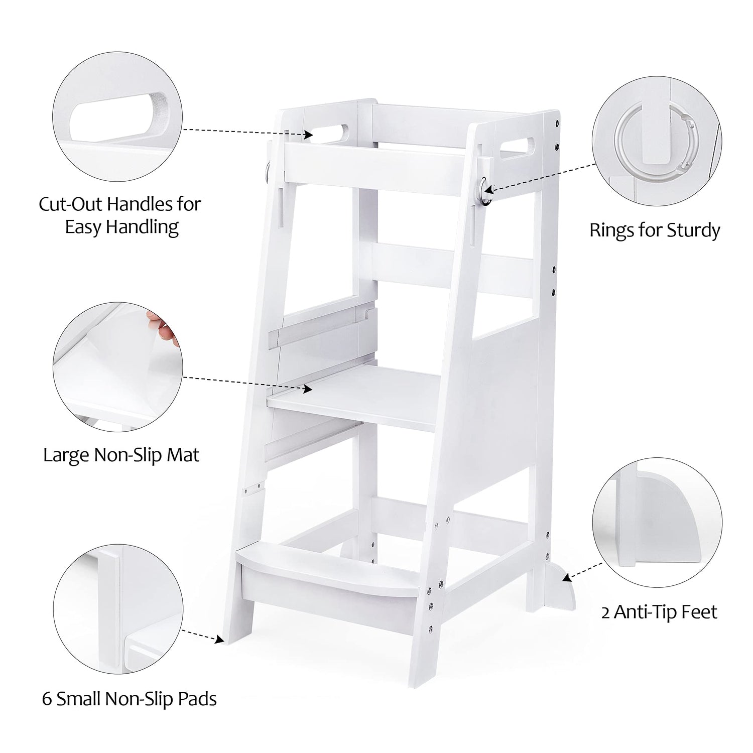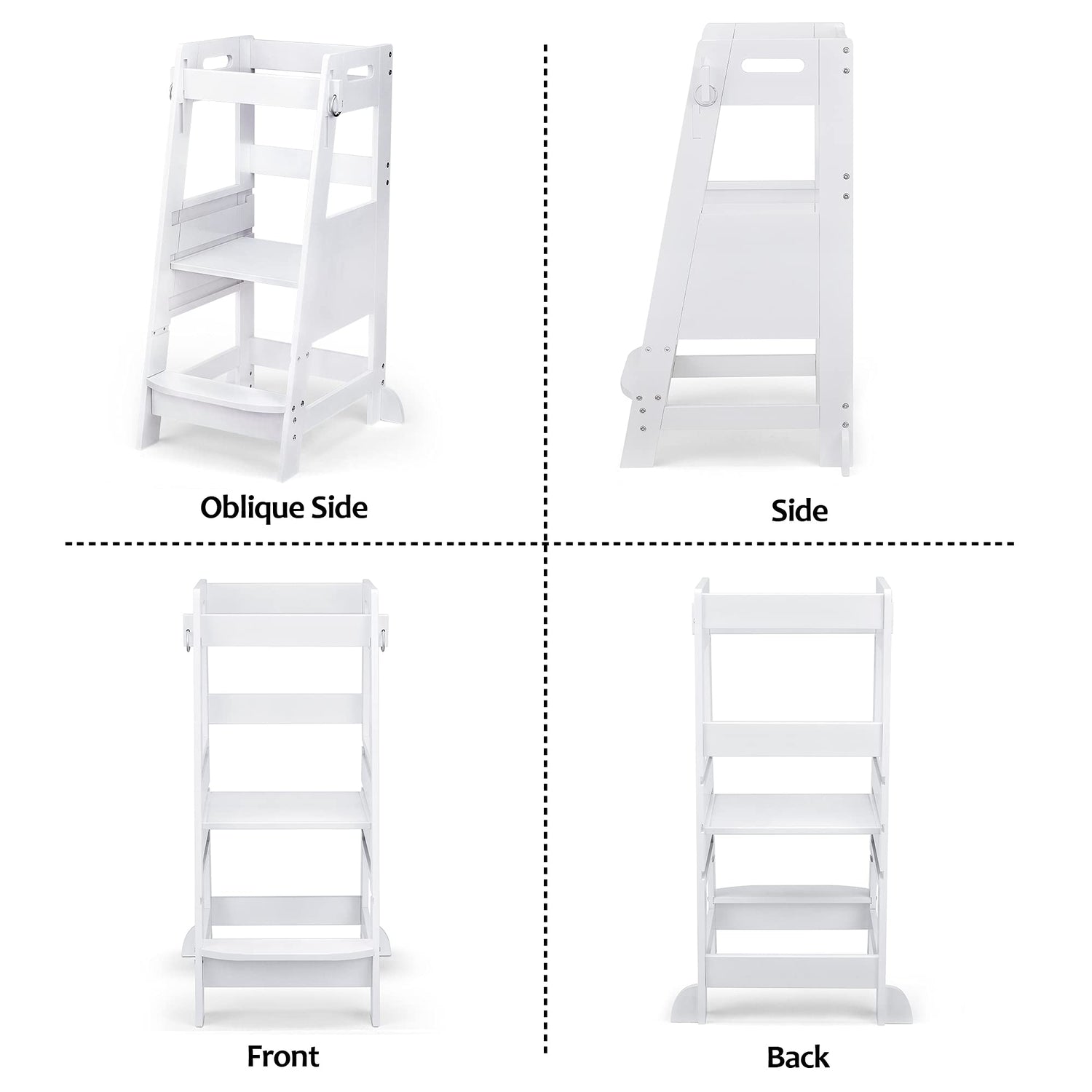 TOETOL Bamboo Toddler Kitchen Step Stool White Helper Standing Tower Height Adjustable with Anti-Slip Protection for Kids Kitchen Counter Learning