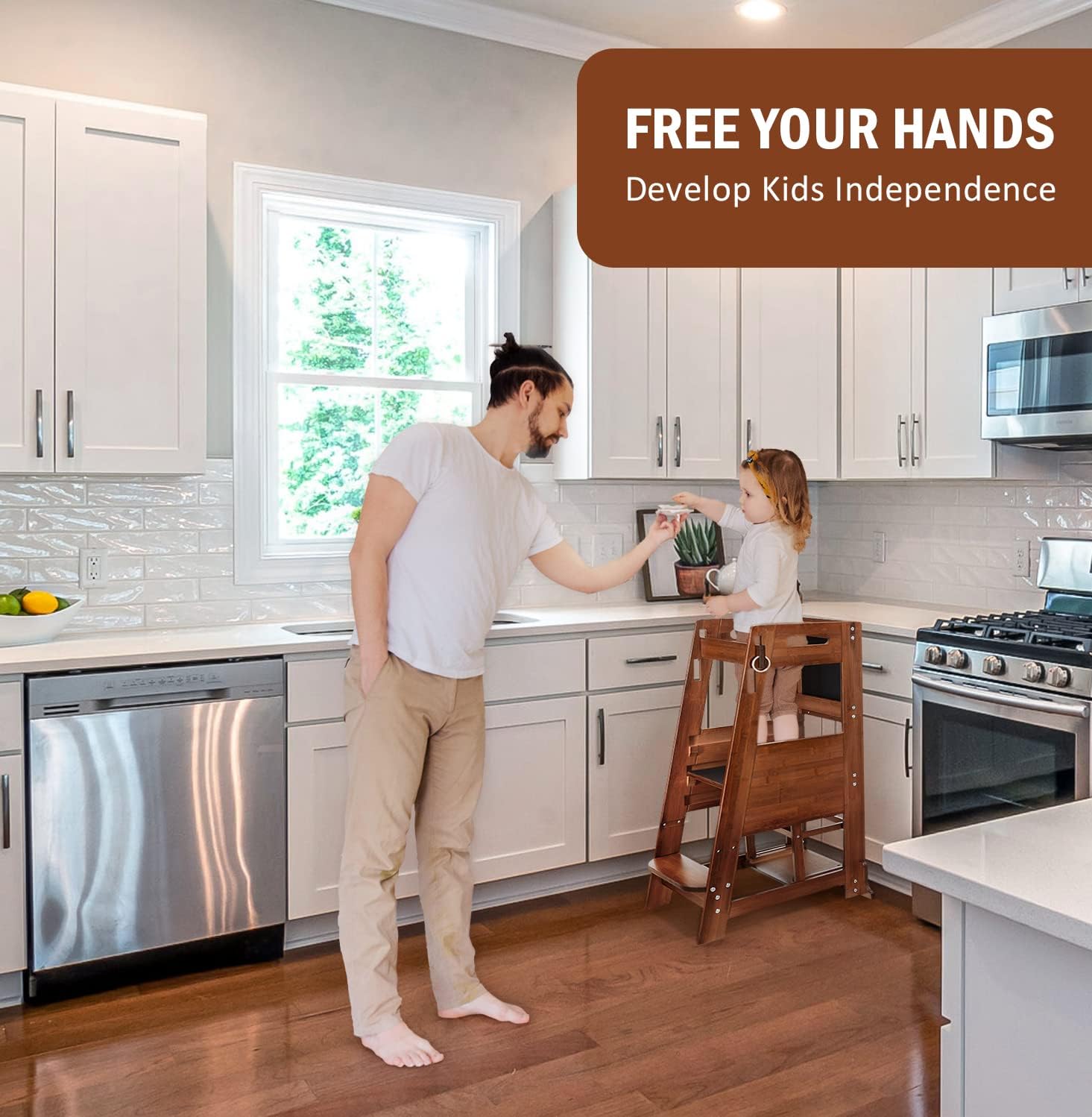 - KITCHEN STEP STOOL & MUTI-FUNCTIONS: The toddler standing tower is pretty useful to develop toddlers independence skills, it help your kids prepare food in kitchen, wash and brush teeth in washing room, have food in dining room and etc.