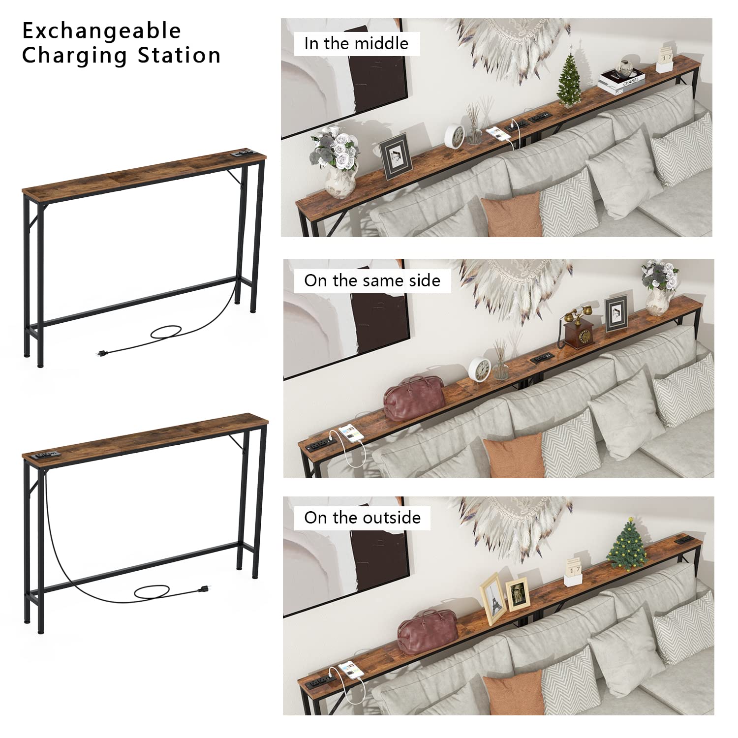 Tohomeor 5.9" Skinny Behind Sofa Console Table with Charging Station 47.24" Narrow Long Behind Couch Table with Power Outlets USB Ports Thin Entry Table for Entryway Living Room Hallway