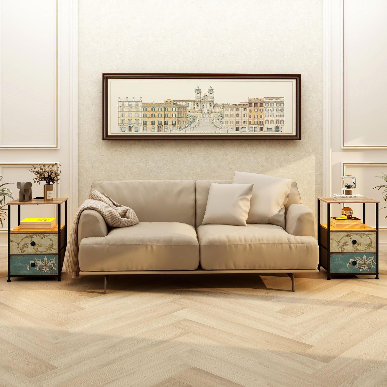 - 【Practical and Versatile Drawers】This nightstand has 2 fabric drawers and two open shelves for displaying photos, books, and lamps. The drawers are easy to pull in and out, making it easy to store and access your personal essentials.