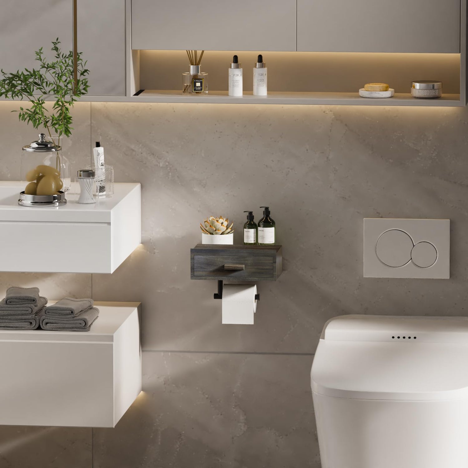• MORE CONVENIENT DESIGN: Unlike the traditional flip-top design, our toilet paper holder allows you to place items directly on the shelf while pulling out the drawer to access the wipes, making it easier to use!