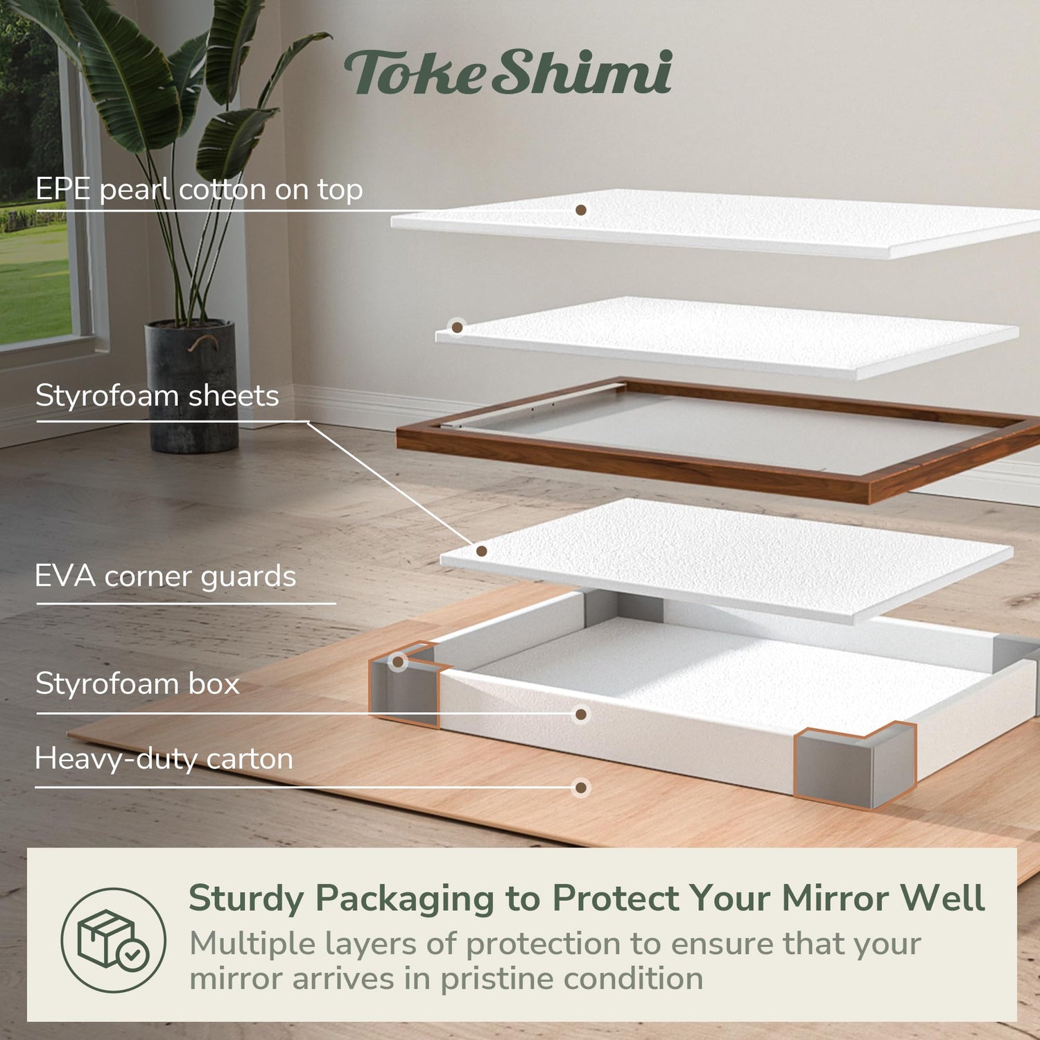 - Versatile to Suit Different Rooms and easy french cleats installation: TokeShimi wooden framed mirror fits in any room decoration. You can install the rustic wall mirror above the sink in the bathroom easily with the french cleats, or you can mount it as a decorative mirror in the bedroom, living room, entryway, etc