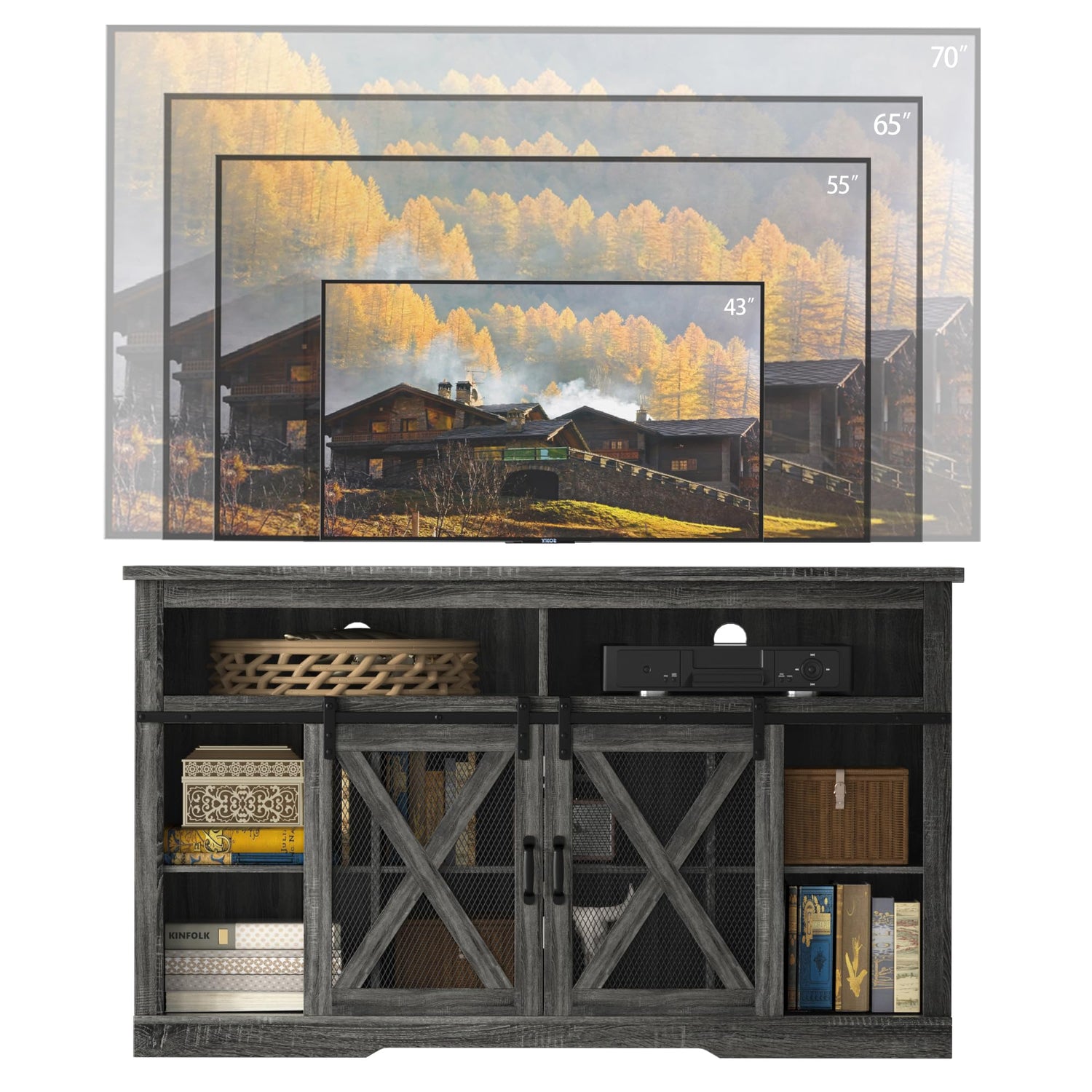 TOLEAD Farmhouse TV Stand for 65 inch TV Farmhouse Entertainment Center with Sliding Barn Doors Console Storage Cabinet for Living Room, Bedroom Grey