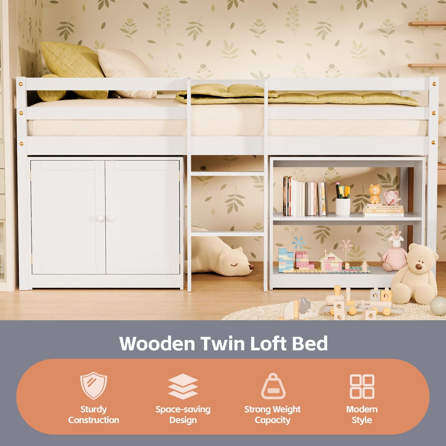 - BUILT-IN STORAGE FEATURES FOR A TIDY ROOM: Featuring a convenient book storage cabinet and a storage shelf, this twin size loft bed allows your child to organize their books, toys, and other essentials in one central location. The added storage elements help maintain a clean and organized room, reducing the mess and teaching kids to keep their space neat. Cabinet can be dissembled and moved, you can also turn it into a bunk bed