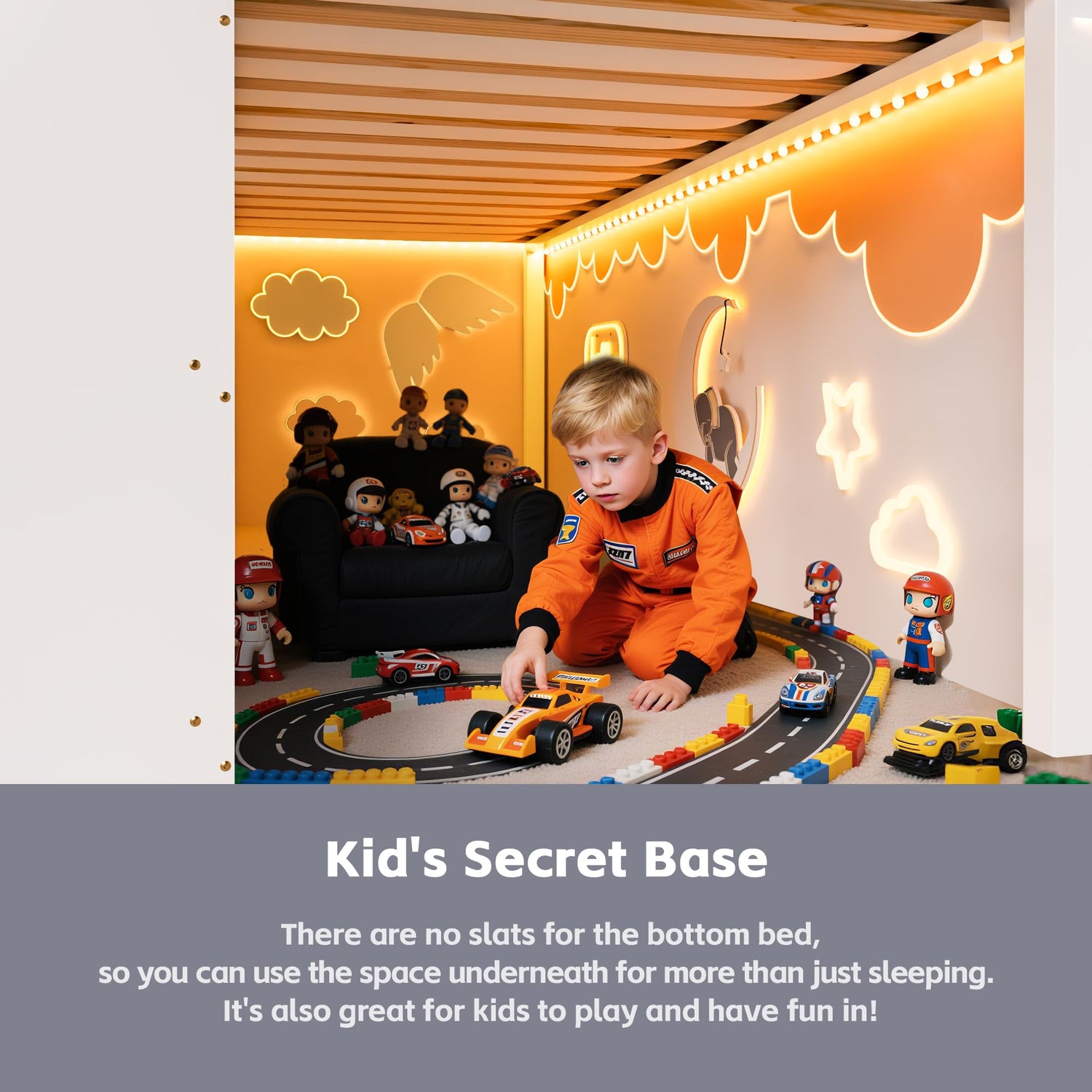 - FUN AND CREATIVE UNDER-BED PLAYGROUND SPACE: There is no bed slats for the bottom part of this toddler loft bed. The expansive open space underneath the bunk bed serves as a fun, secret base or play area for your child. This extra space encourages creativity and imaginative play, providing an exciting environment for kids to explore