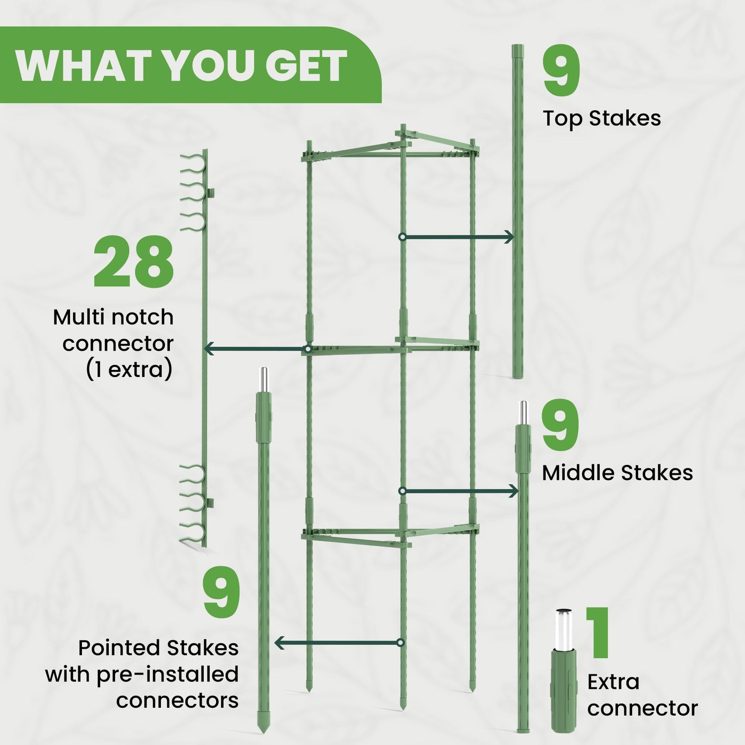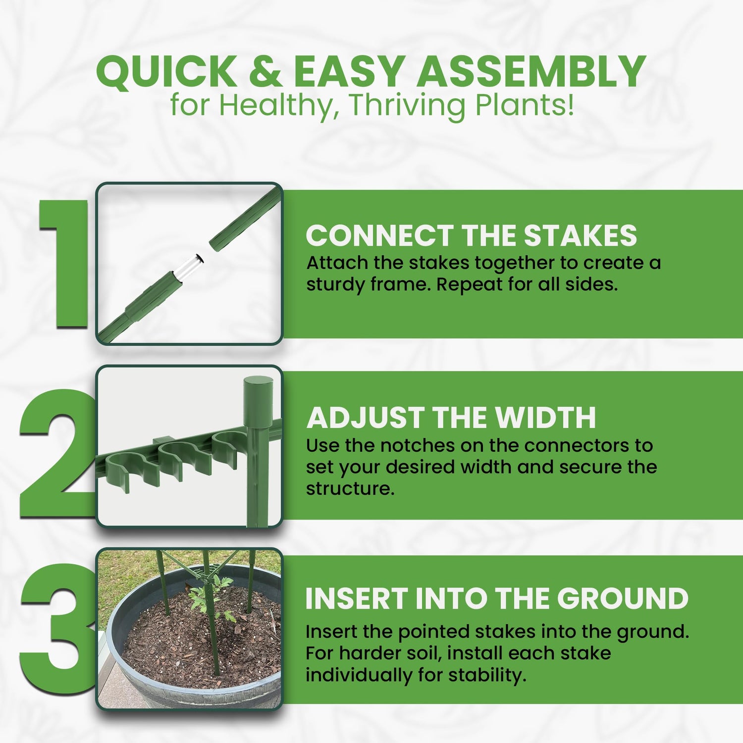 - NEW AND IMPROVED CONNECTORS: Enjoy superior stability with our upgraded connectors, designed to keep your plants upright, healthy, and thriving all season long, no matter the conditions