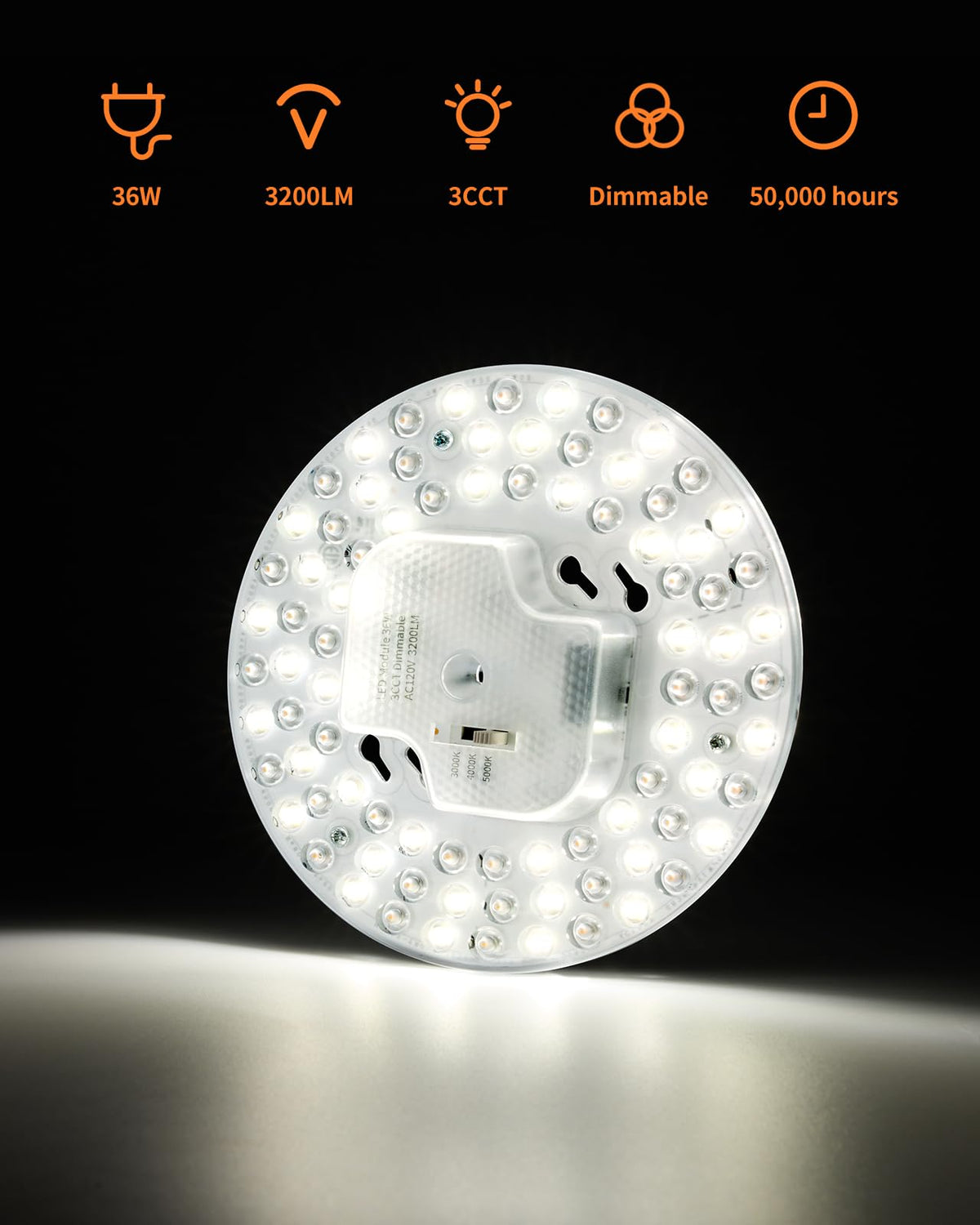 - Super Bright & Energy Saving: The 36W ceiling fan led light replacement outputs 3200LM of strong light, saving 80% of energy and electricity bills. Lifespan of 50,000 hours, reduces lamp replacement frequency and maintenance costs