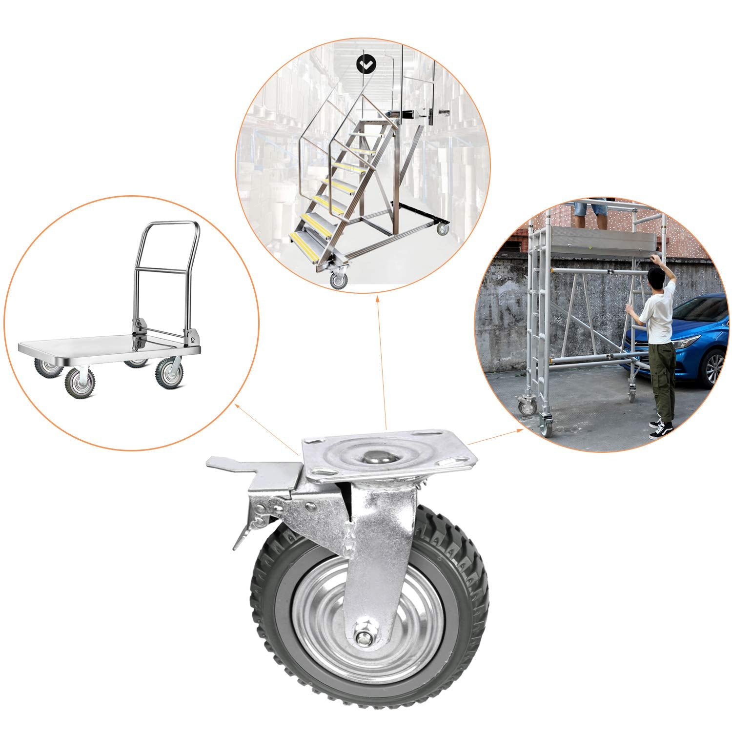 tonchean 6 Inch Rubber Caster Wheels Heavy Duty Anti-Skid Swivel Casters 1653Lbs Silent Universal 360 Degree Rotation Ball Bearing Set of 4 (All Swivel,2 with Brake Lock, 2 Without)