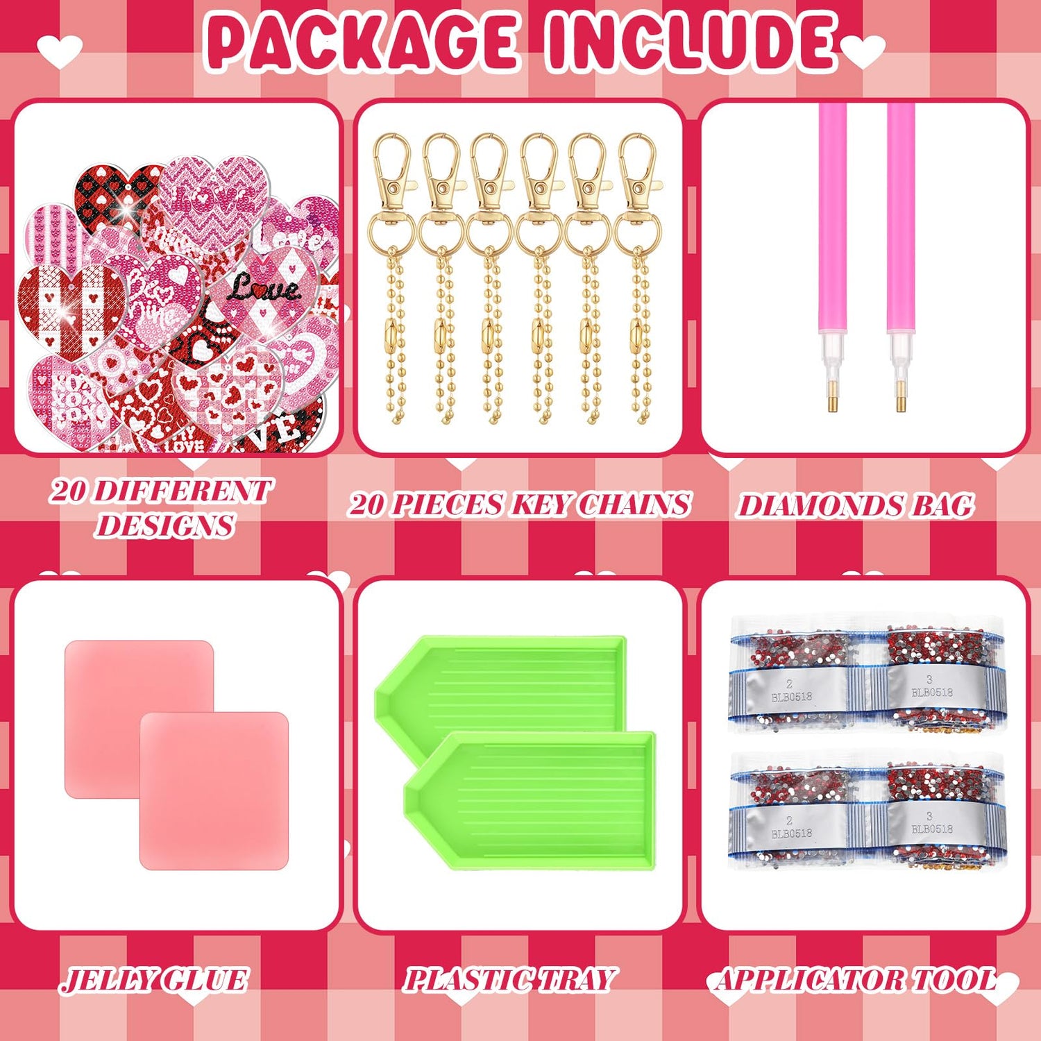 - Package Including: our package contains 20 Valentine Day heart diamond painting keychains with tools, which are suitable for those who like DIY; Plenty to use for multiple projects or share with friends and family for a fun Valentine Day break together