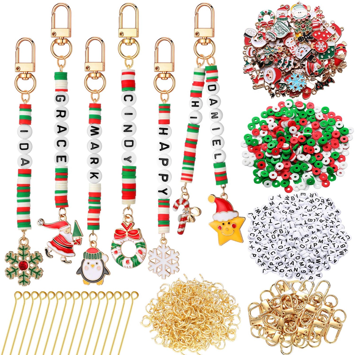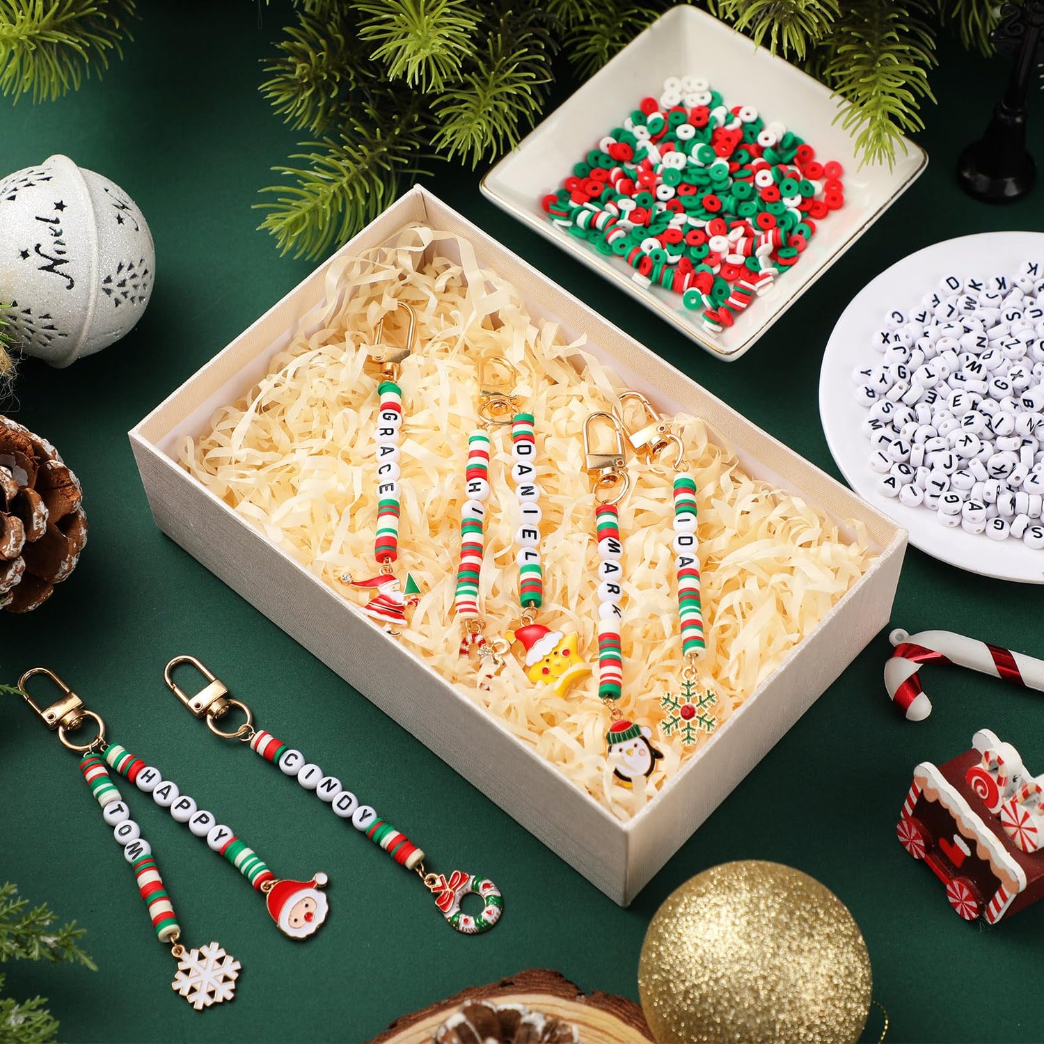 - Endless Creative Possibilities: the Christmas Bead Keychain DIY Craft Making Kit offers a massive collection of 2823 pieces, including 600 alphabet beads and 2000 colorful clay discs; Transform these into personalized keychains, creative gifts, and meaningful keepsakes