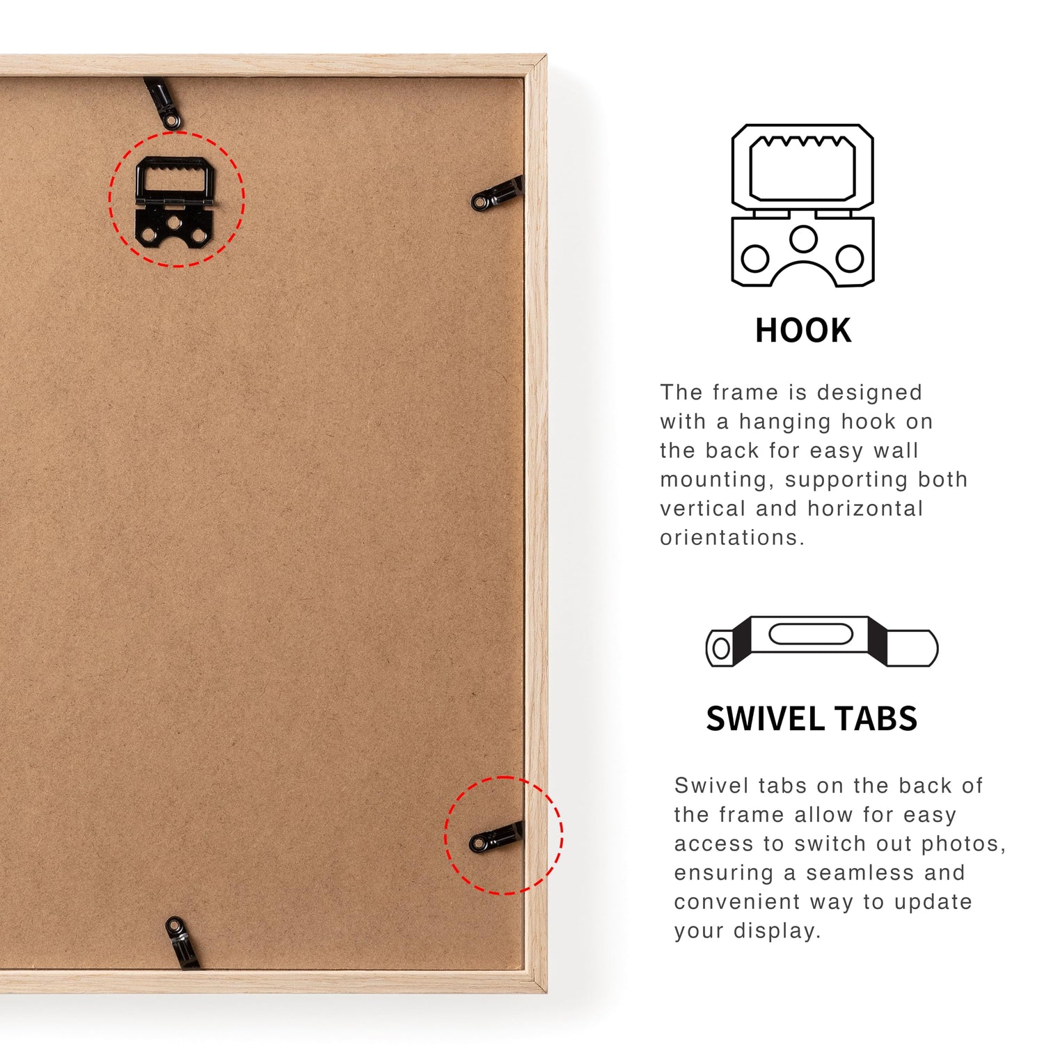 - VERSATILE DISPLAY: Whether adorning your desk or hanging on the wall, this wall frame enhances indoor spaces, creating an inviting ambiance. With sturdy back panels and versatile hooks for horizontal or vertical placement, your cherished memories are displayed securely.