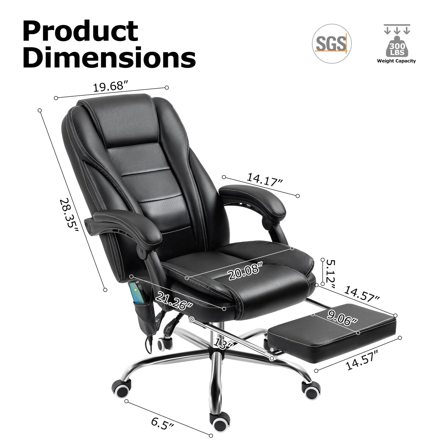 TonghuaS Reclining Massage Office Chair with Footrest, High Back Ergonomic Executive Chair with Heating and Vibration Function(Black)