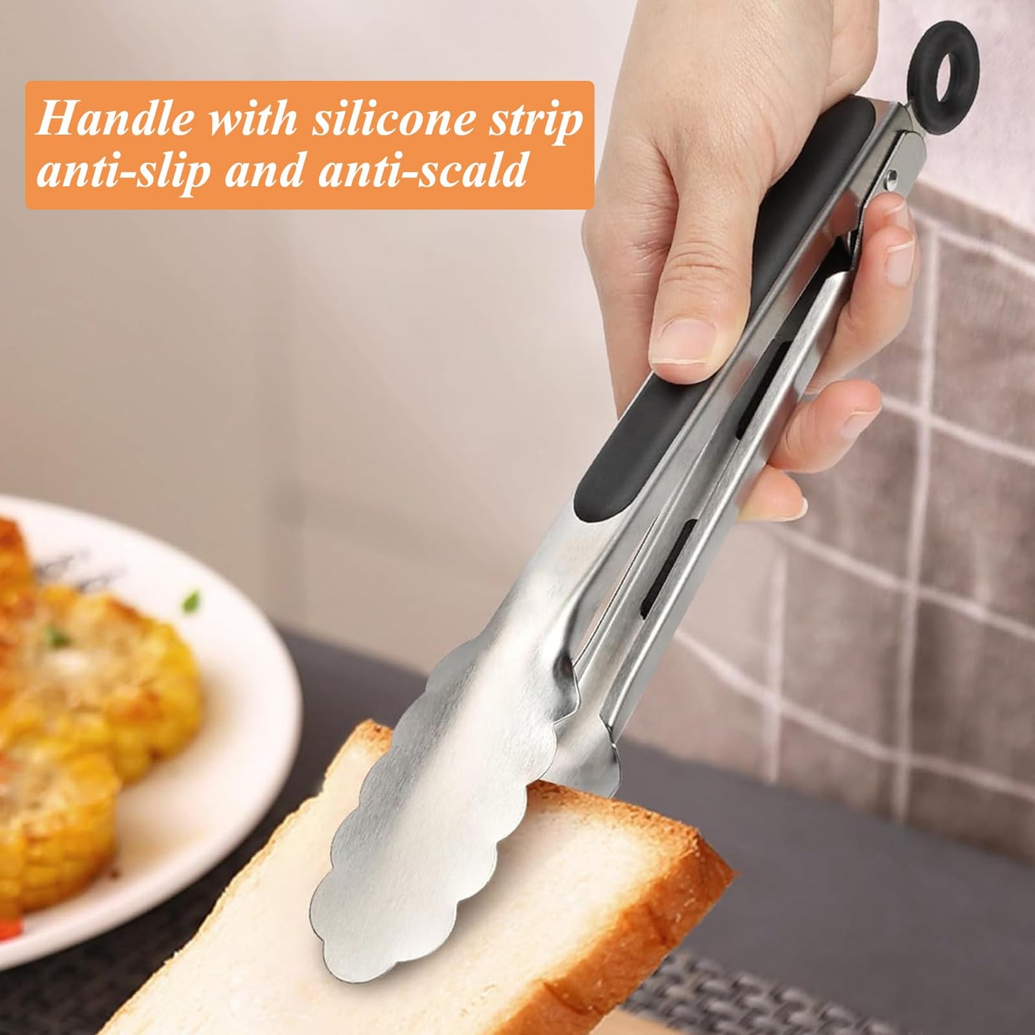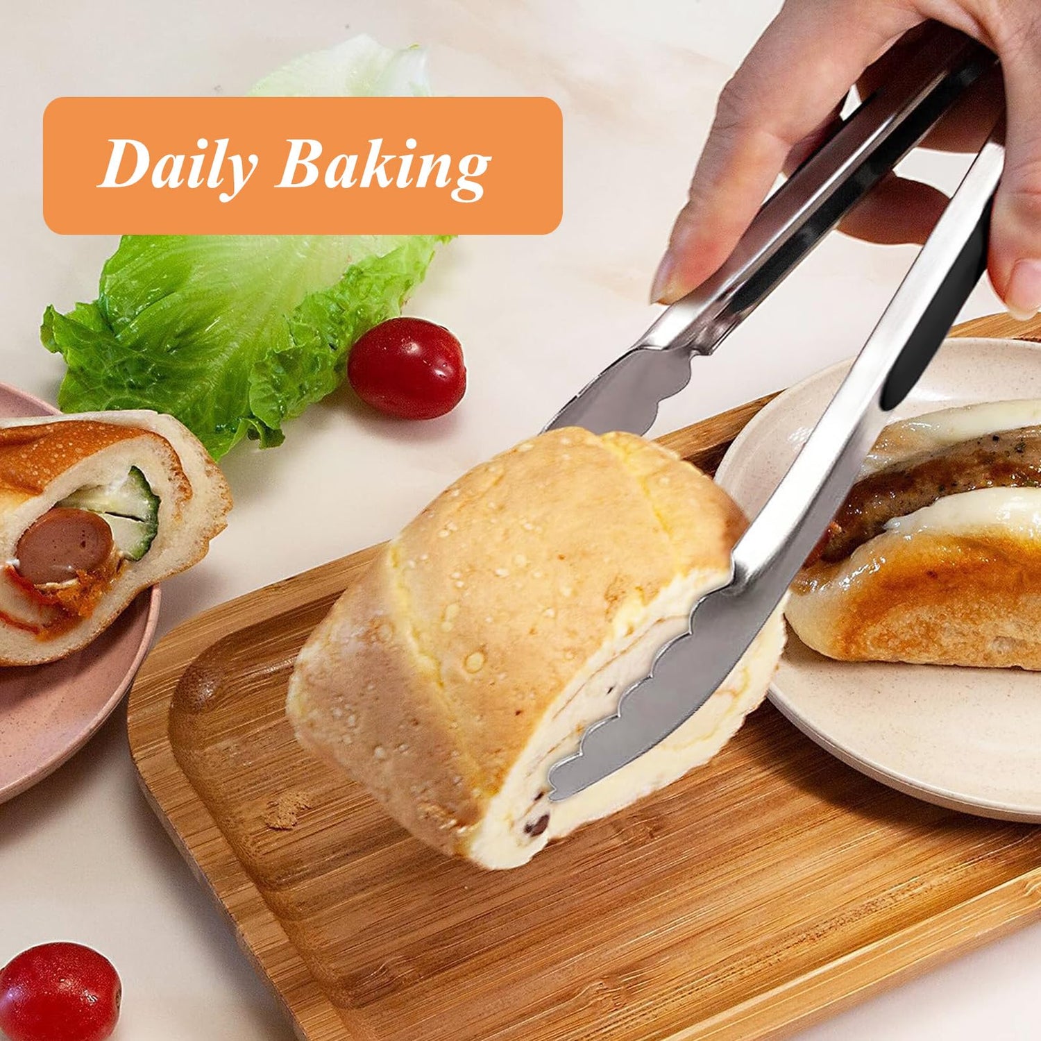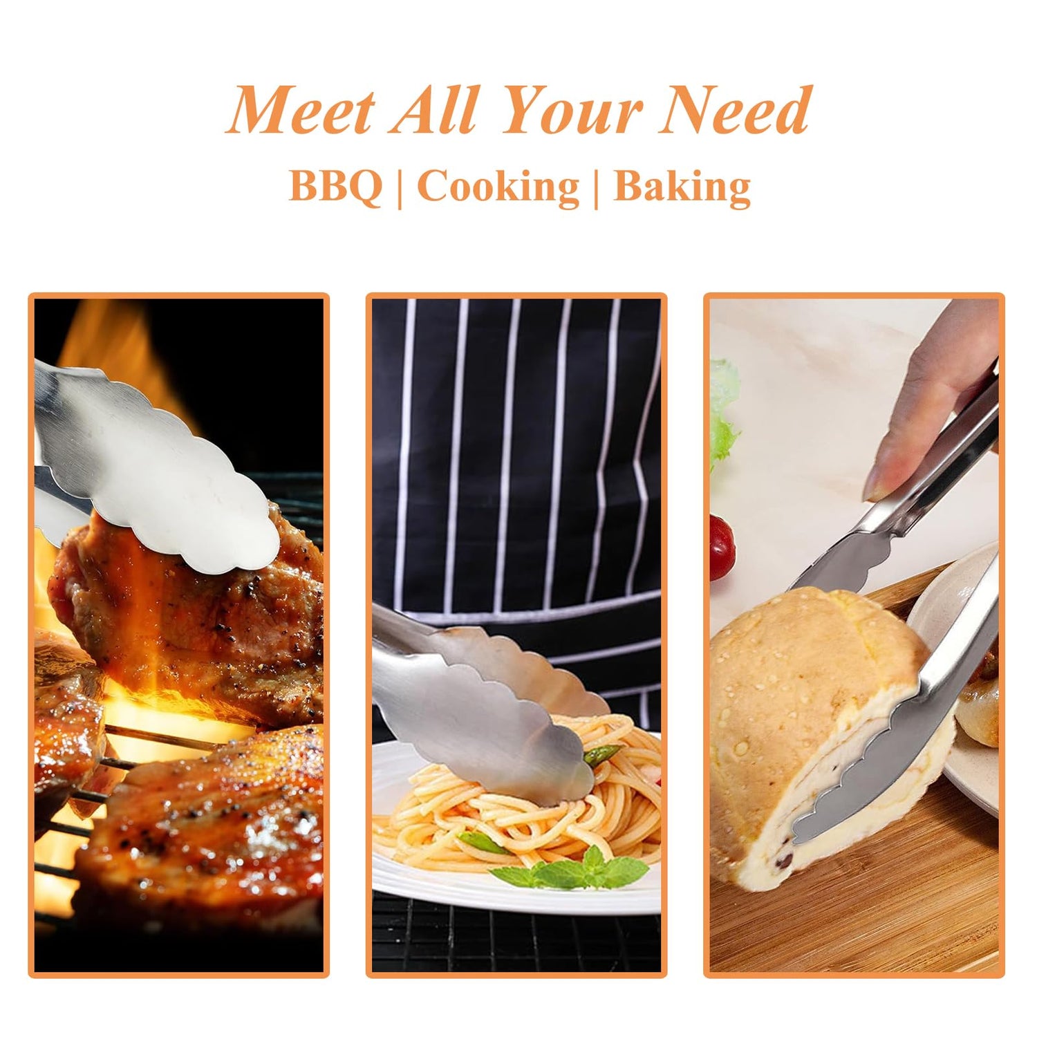 - Food Grade Stainless Steel: The cooking tongs are made of food grade stainless steel, sturdy, heat-resistant, rust-resistant, lightweight and safe for direct food contact, which can meet your various kitchen cooking needs