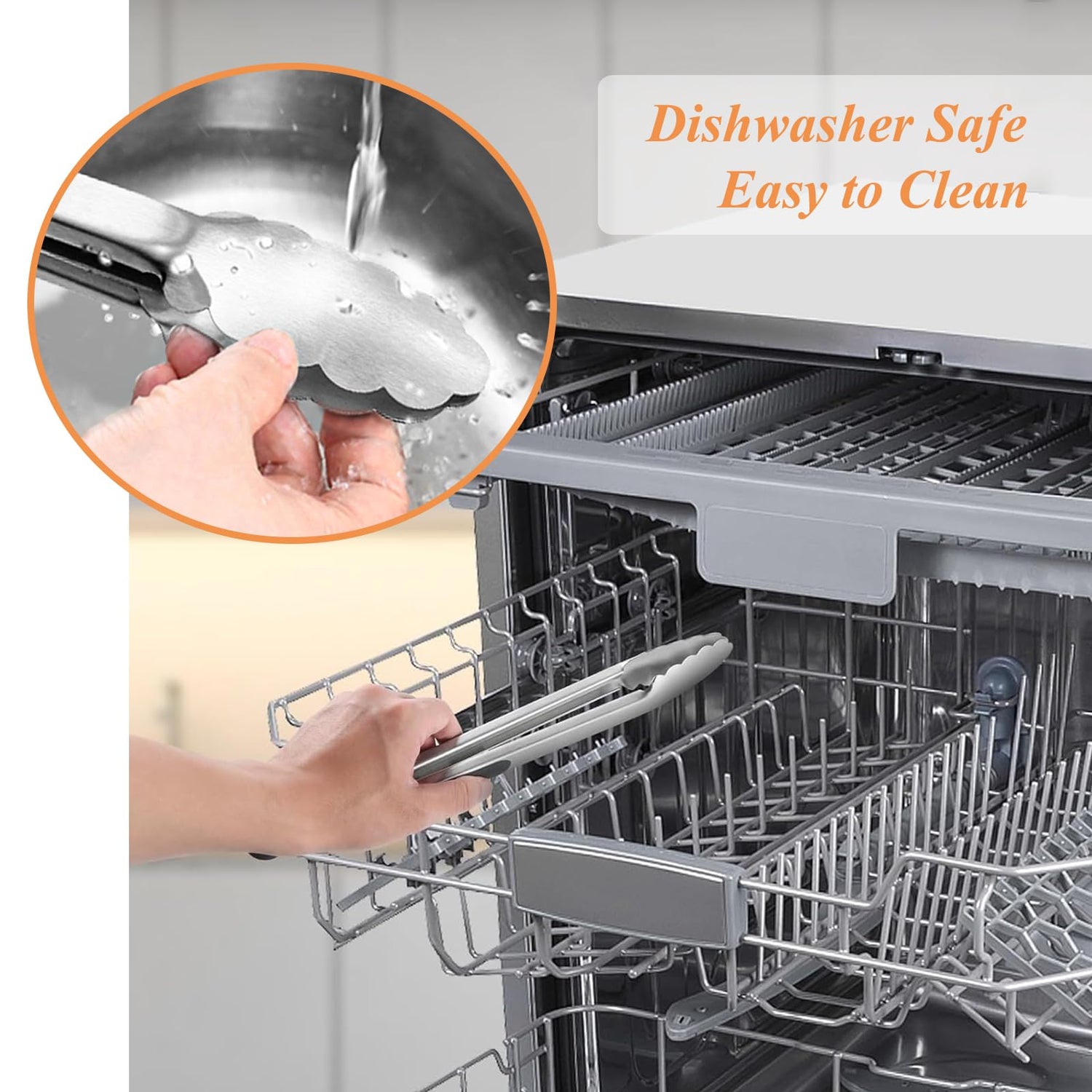 - Dishwasher Safe: Heat resistant up to 480°F, these heat resistant grilling tongs are also easy to clean. You can just wash them in soapy water or simply throw them into the dishwasher