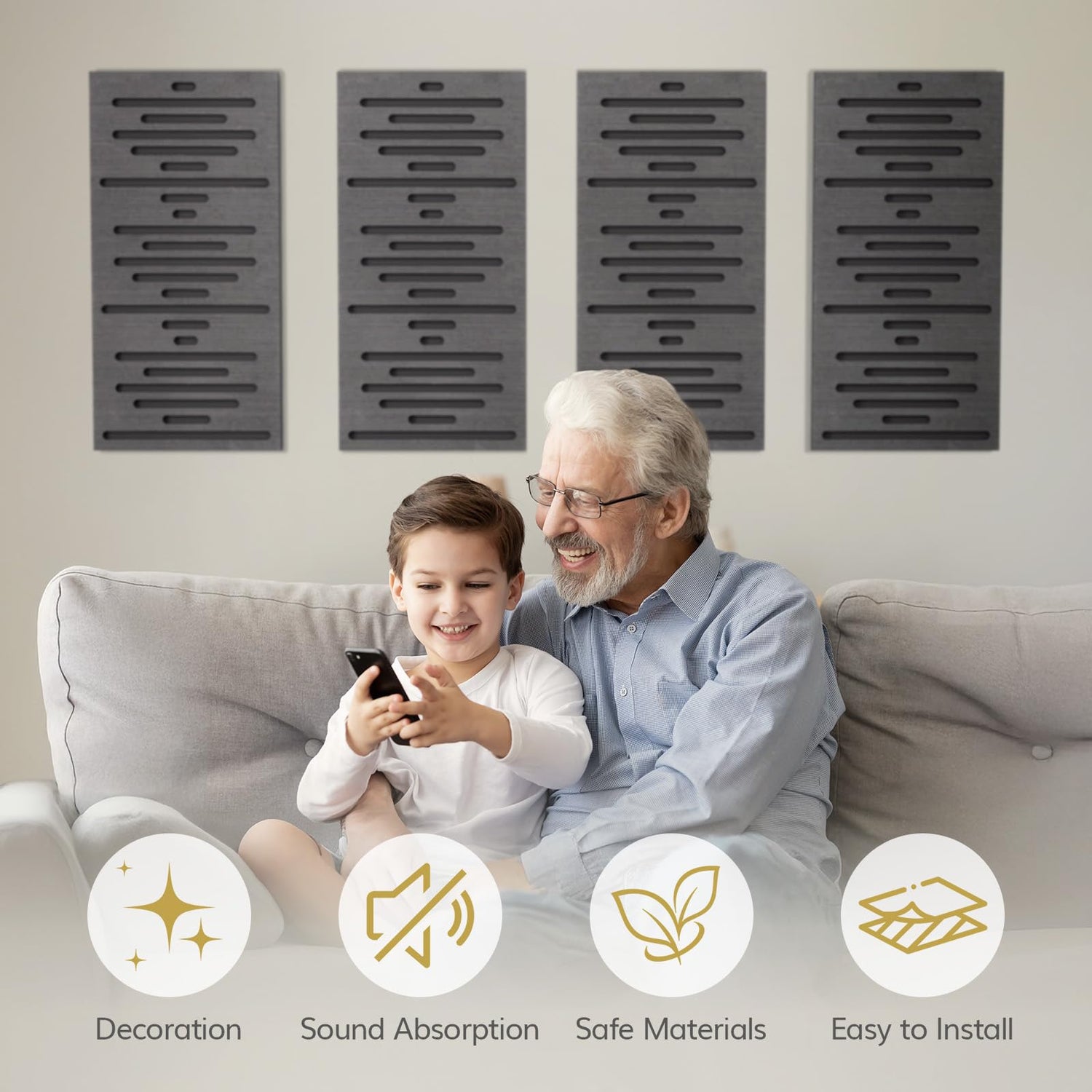 • Safe Materials: Made from high-quality wood veneer, polyester fiber, and foam, these large acoustic panels meet the E1 environmental standard with low TVOC content. Safe for people of all ages and pets, they ensure a secure environment