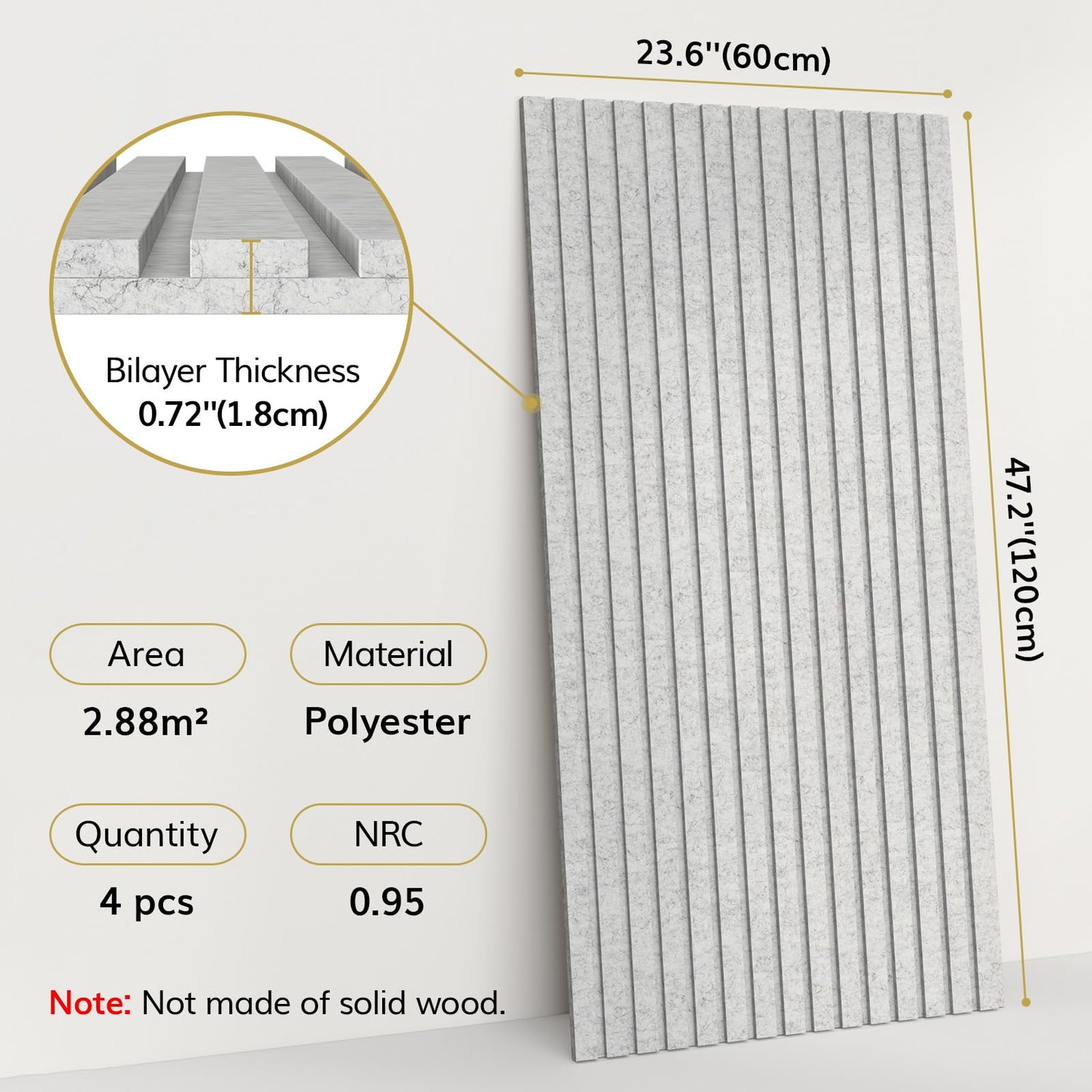 TONOR 4-Pack Bilayer Acoustic Panels Large Self-adhesive, 47.2” * 23.6” * 0.72” Adhesive Wall Panel, Large Soundproof Tiles for Echo Absorbtion, Acoustical Barrier of Polyester Fiber, Grey