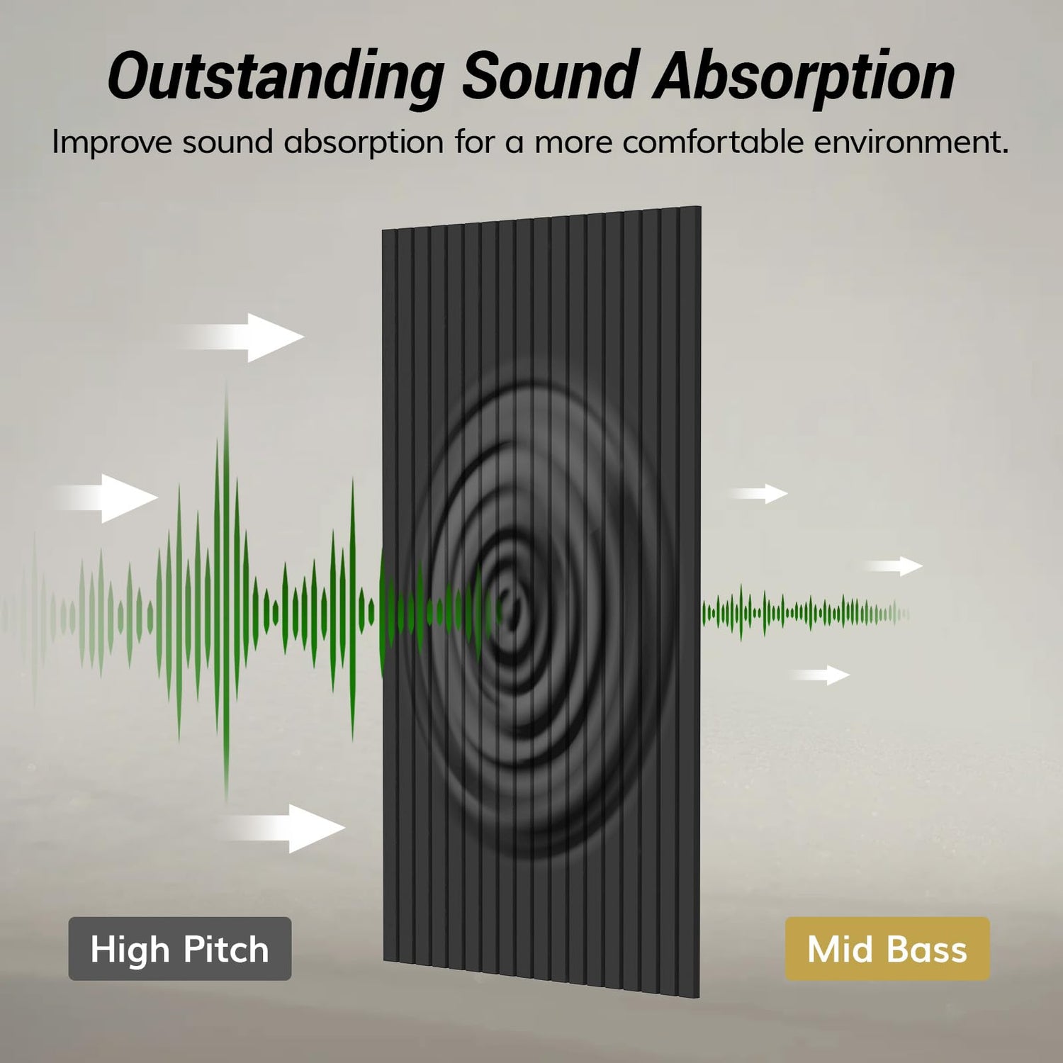 - Superior Sound Absorption: Large acoustic panels, measuring 47.2'' x 23.6'', boast a high density of 212.2kg/m³ and an impressive NRC of 0.9. With a larger surface area, these panels effectively disperse noise and eliminate echo, providing a superior experience