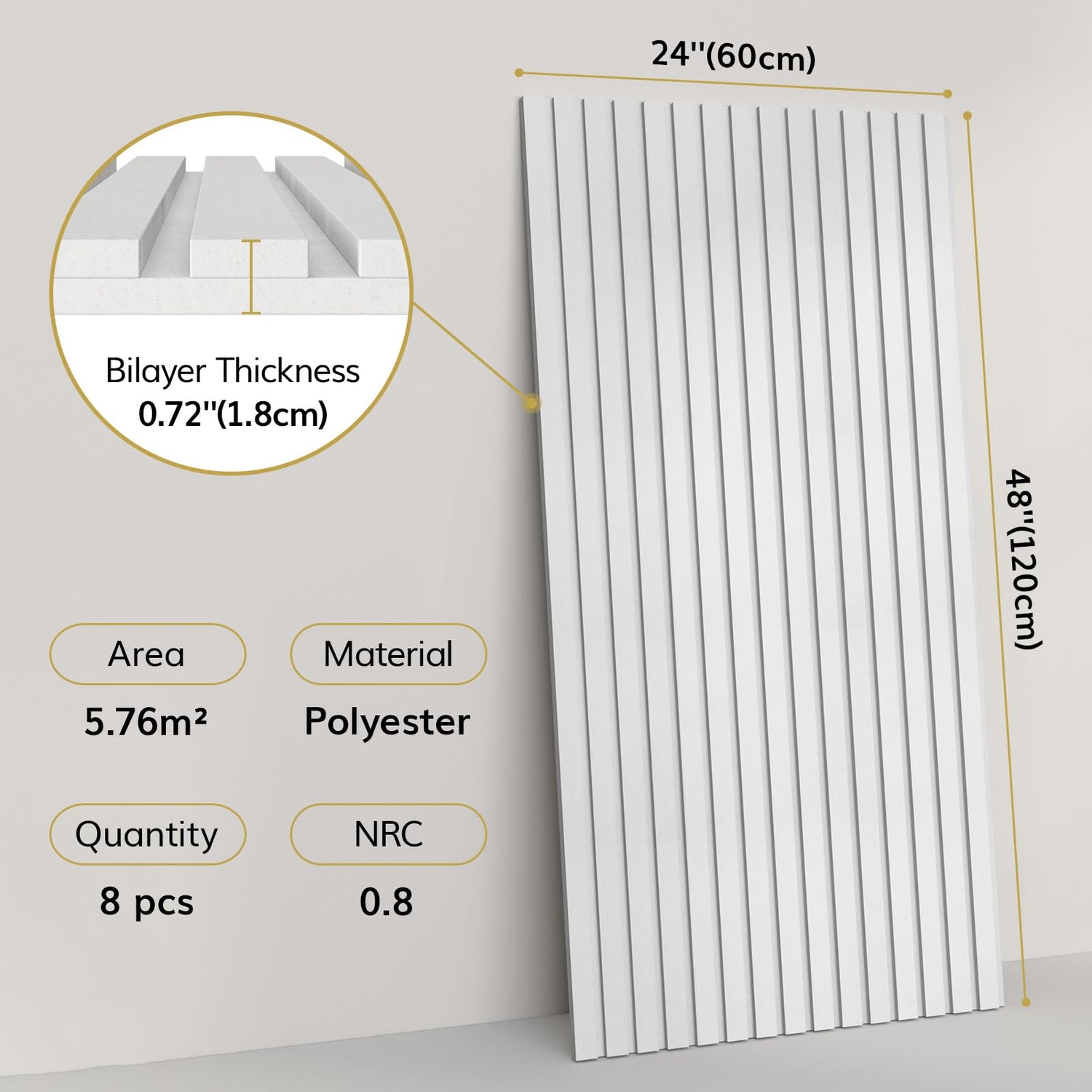 TONOR 8-Pack Bilayer Acoustic Panels Large Self-adhesive, 48” * 24” * 0.72” Adhesive Wall Panel, Large Soundproof Tiles for Echo Absorbtion, Acoustical Barrier of Polyester Fiber, White