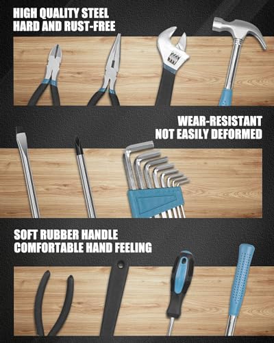 - Multi-functional Hand Tool Set: Versatile and easy to handle, this basic home tool kit is a practical and professional helper, whether it's for repair or maintenance, drilling, furniture and toy assembly and design, this portable hand tool set will meet all your needs