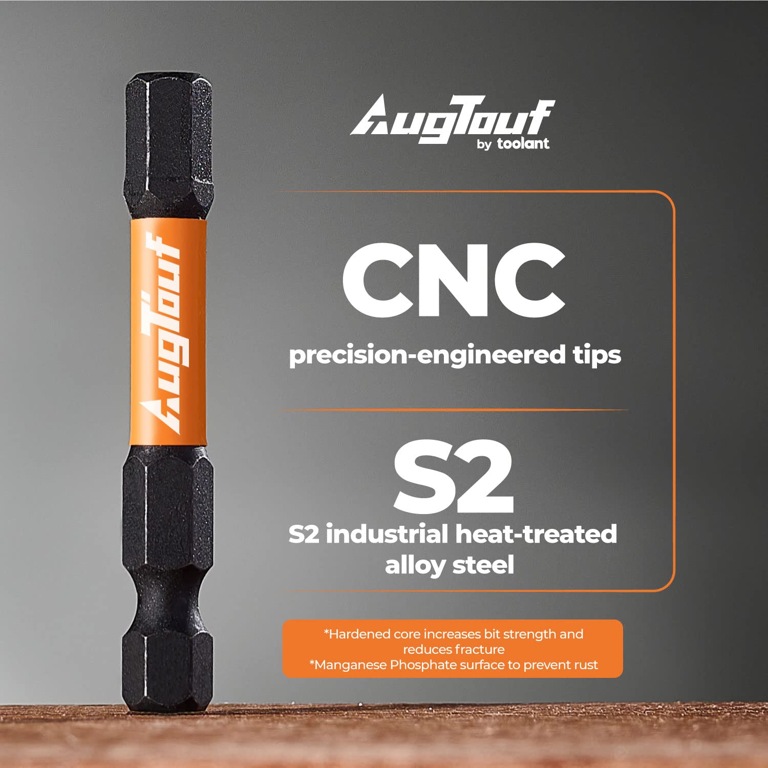 - CNC machined tips, S2 alloy steel body, hardened core to increase bit strength and reduce fracture. Manganese Phosphate surface to prevent rust.
