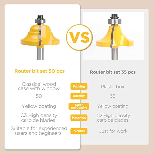 TOOLDO Router Bits Set 50 Pieces,1/4” Shank Tungsten Carbide Router Bits, Professional Router Bit Kit for DIY, Woodworking Project…