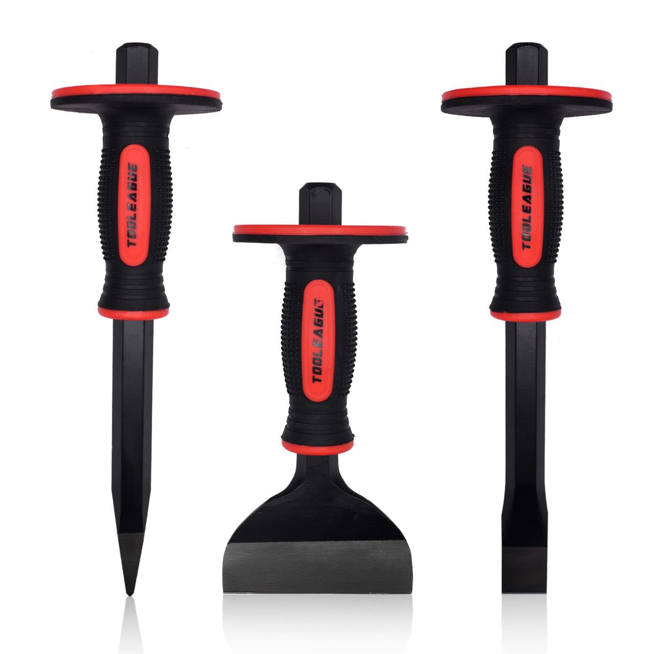 TOOLEAGUE 3Pcs Heavy Duty Masonry Chisel Set, 11-Inch Point & Flat Chisel, 8-Inch Brick Chisel with Hand Protection