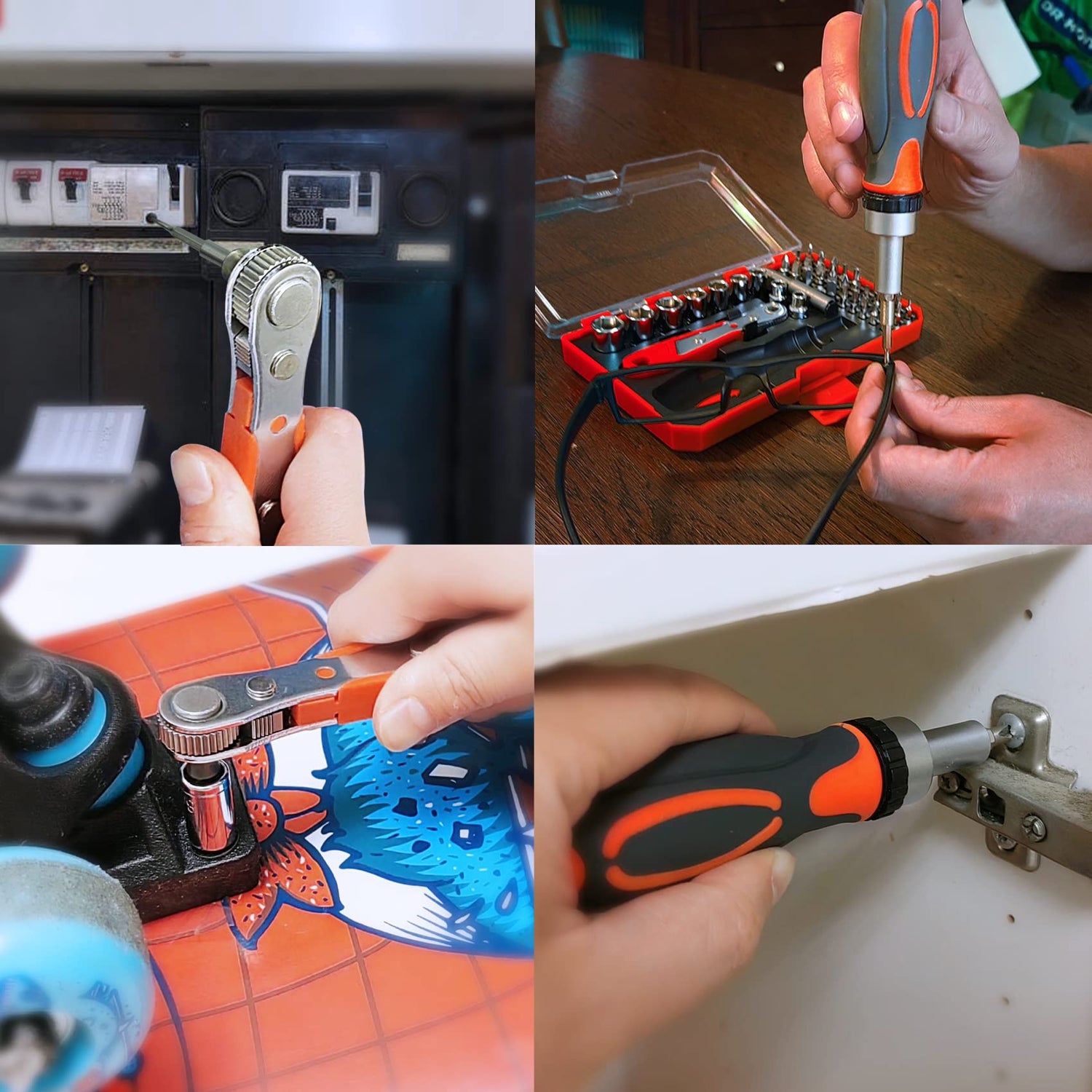 - 【Ratchet Handle Design】Ratchet handle with vertical lateral design, Flexibility to adjust and improve efficiency,It can meet the maintenance needs of different scenarios and is a must-have multifunction maintenance tool for the home and workplace