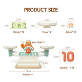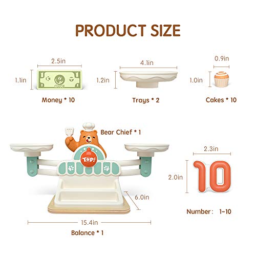 - BALANCE MATH GAME COUNTING TOY: This Montessori Balance Math Game includes a bear scale, 10 cakes, number blocks 1-10, 10 paper money, and 1 instruction sheet, kids can use them to do fun math activities. Children can find the right number of cakes and number blocks and place them on either side of the scale to keep them balanced. In addition, they can use the paper money for buying and selling transactions