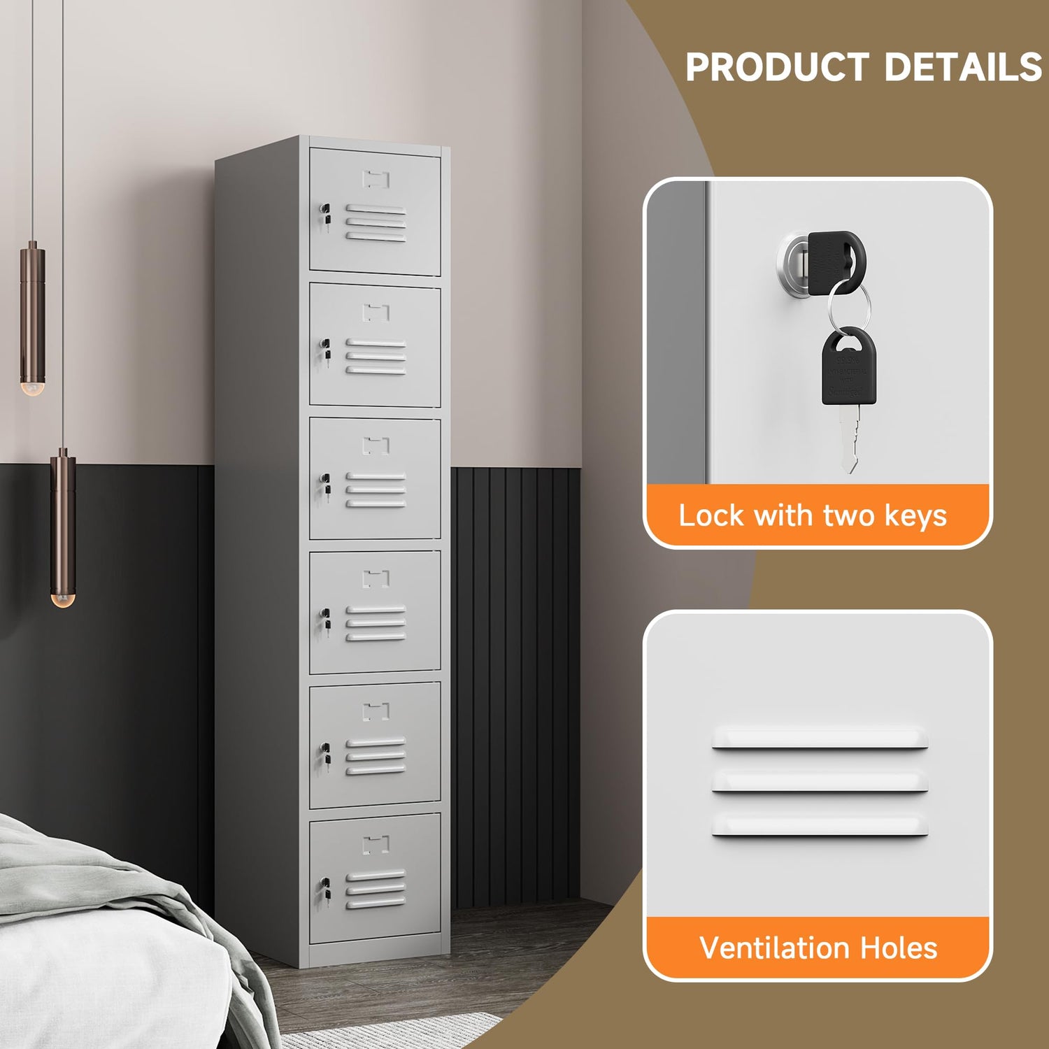 Topass Metal Locker with 6 Doors, Lockable Lockers for Employees, 71" Locker Storage Cabinets for School, Gym, Home, Office, Garage (6-Door, Grey)