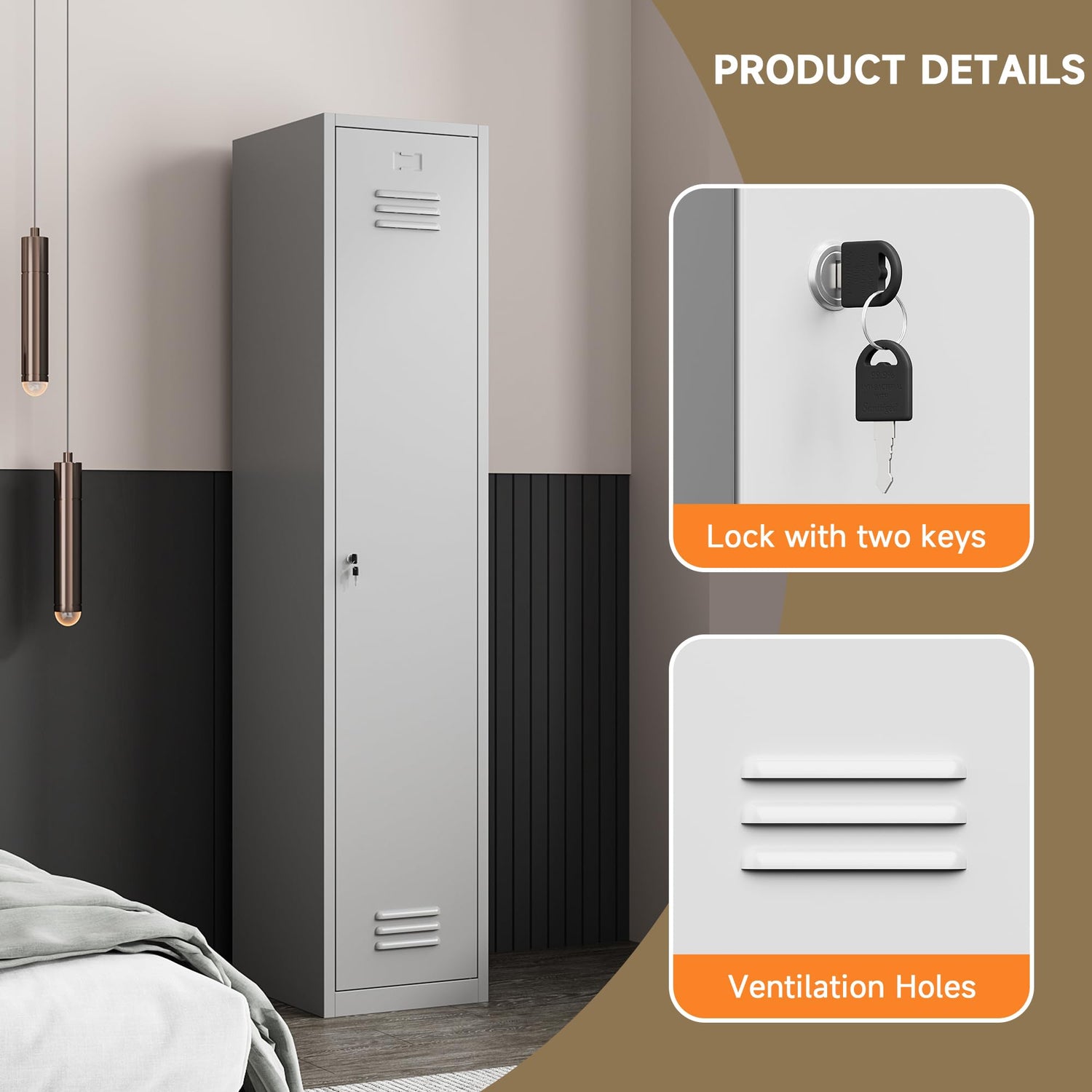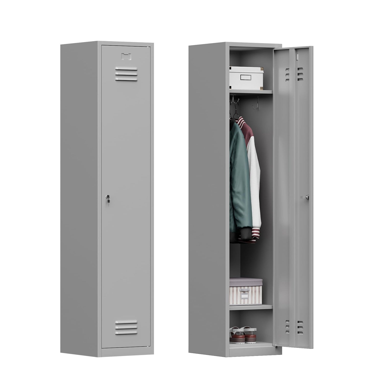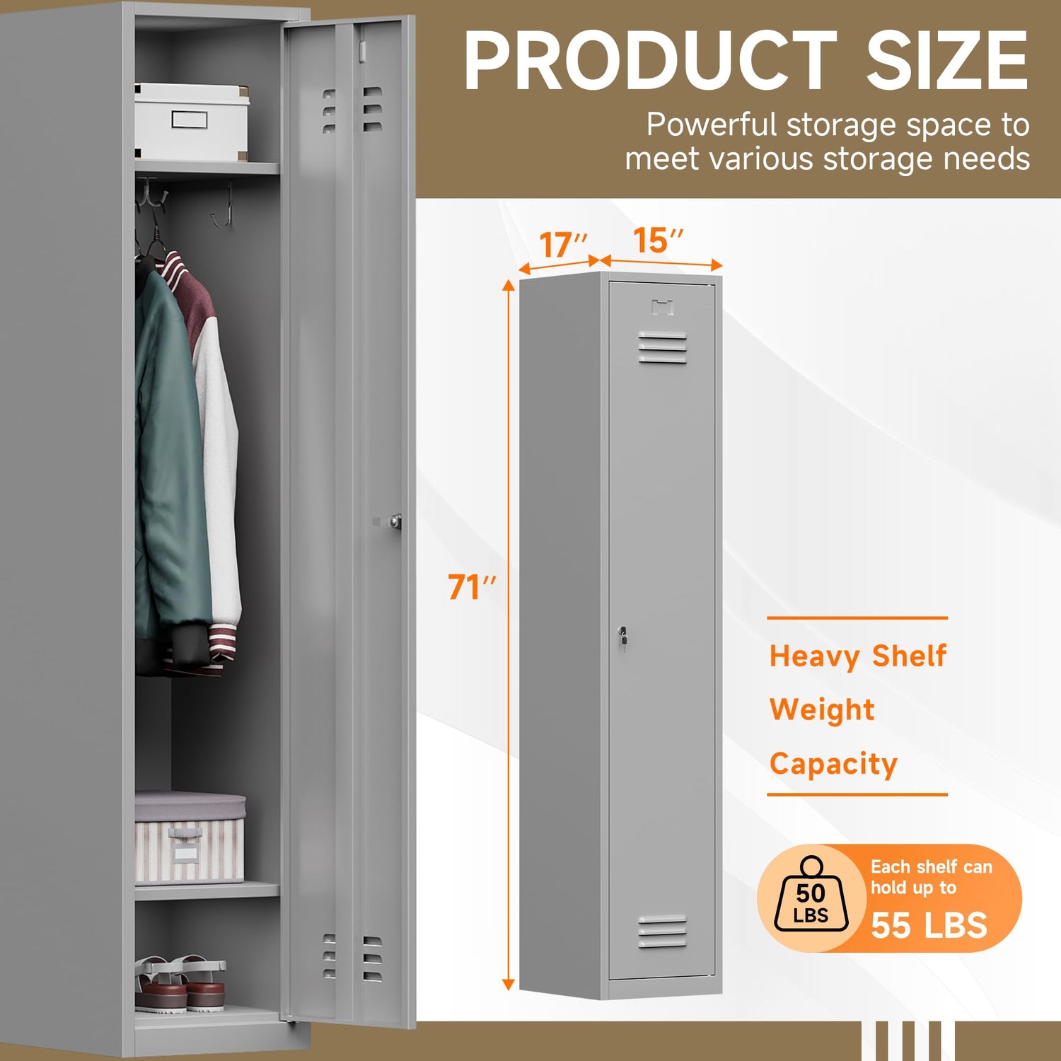 Topass Metal Lockers for Employees with Keys, 71" Tall Steel Storage Cabinet with Lockable Door, Metal Storage Locker for School Office Gym (1-Door, Grey)
