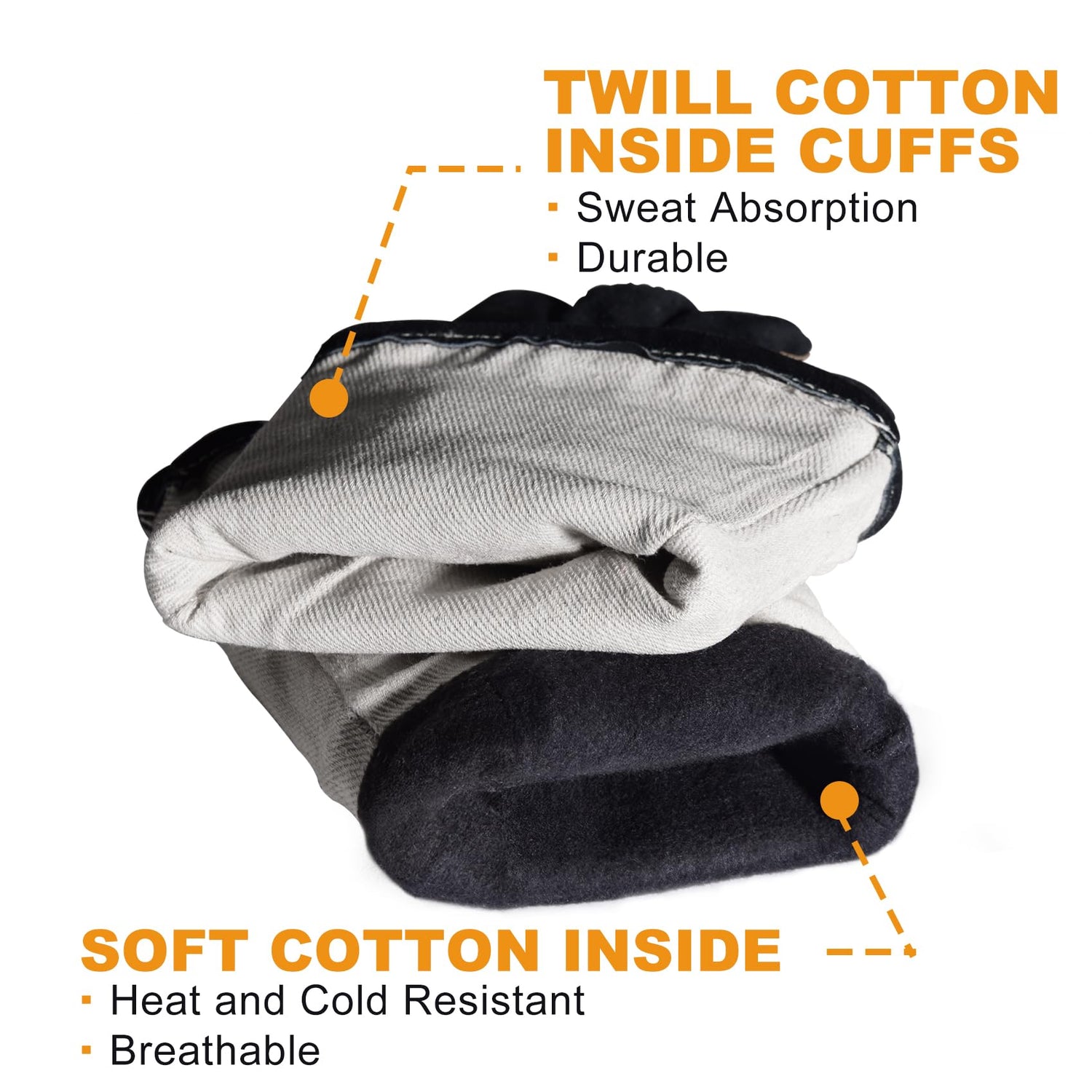 - Superior Comfort: 100% soft insulated cotton lined interior makes gloves have better heat resistance, cold resistance, sweat absorption and breathable during use. Straight thumb design enhances comfort and fingertip sensitivity