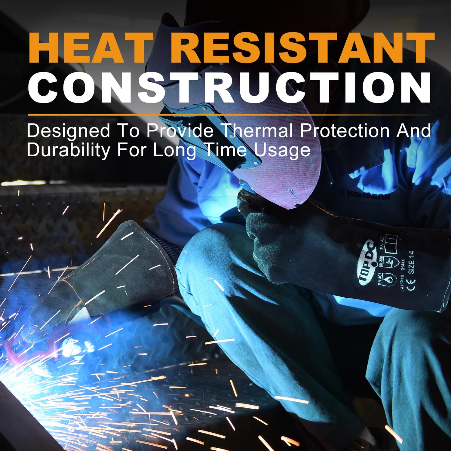 TOPDC Welding Gloves 14 Inches Fire/Heat Resistant Leather For Mig,Tig,Stick,Forge,BBQ,Grill, Fireplace,Wood Stove, Furnace,Pot,Oven