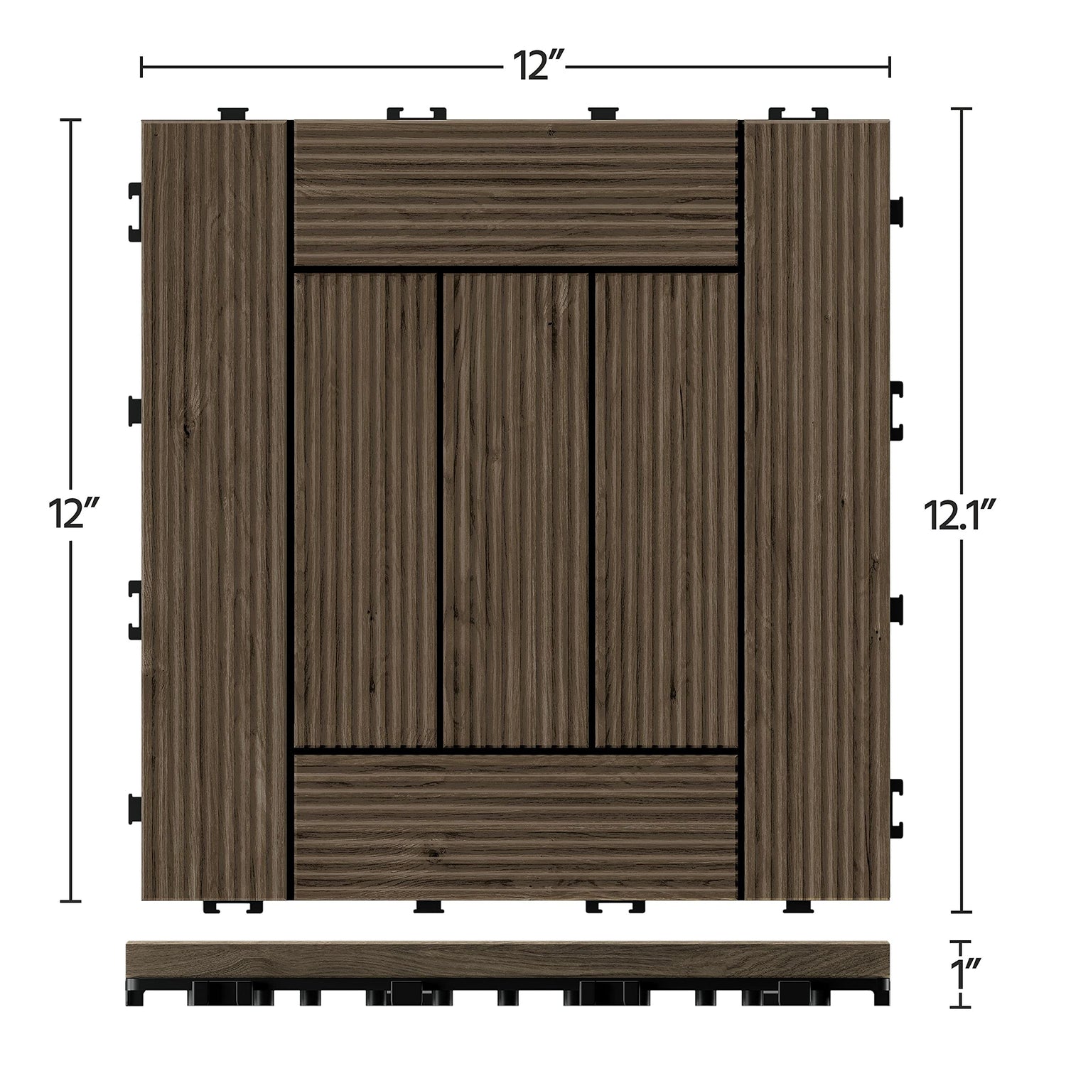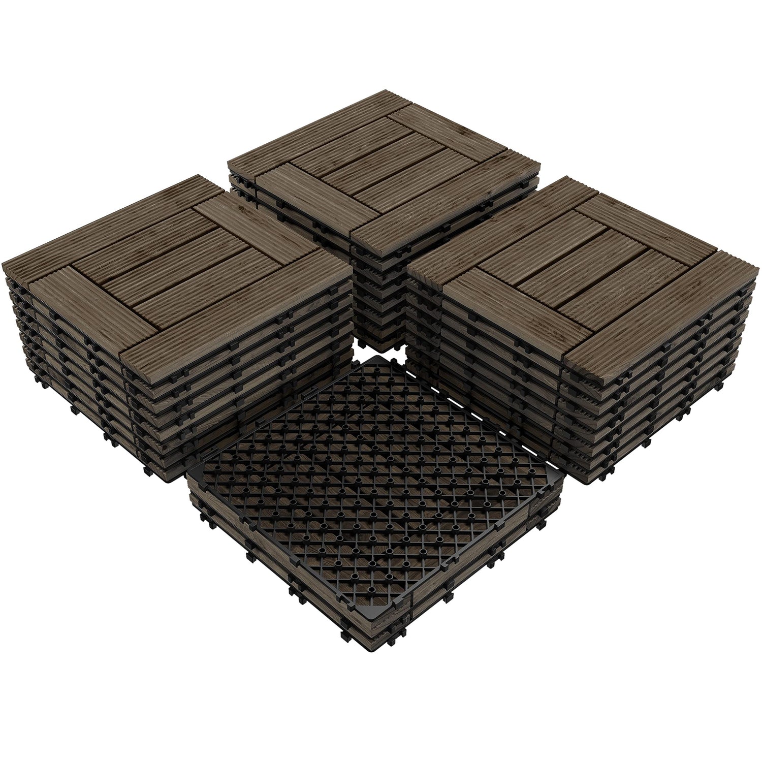 Details: 27pcs Wooden Floor Tiles Patio Pavers Decking for Outdoor & Indoor Patio Garden Deck Poolside 12” x 12”