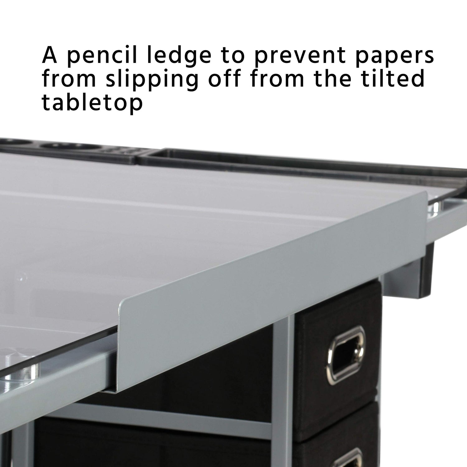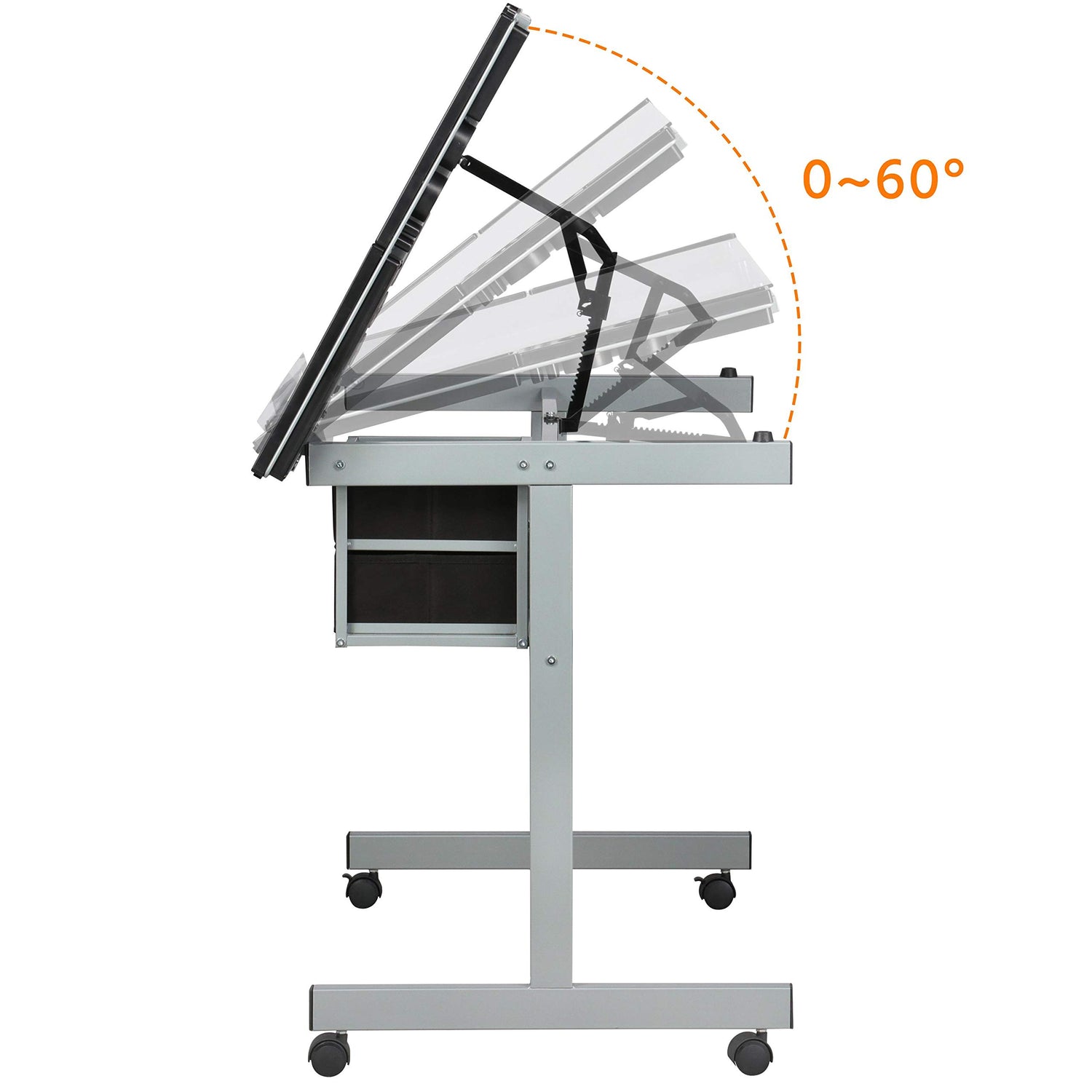 Details: Adjustable Drafting Drawing Craft Table Art Glass Desk w/Storage Drawers