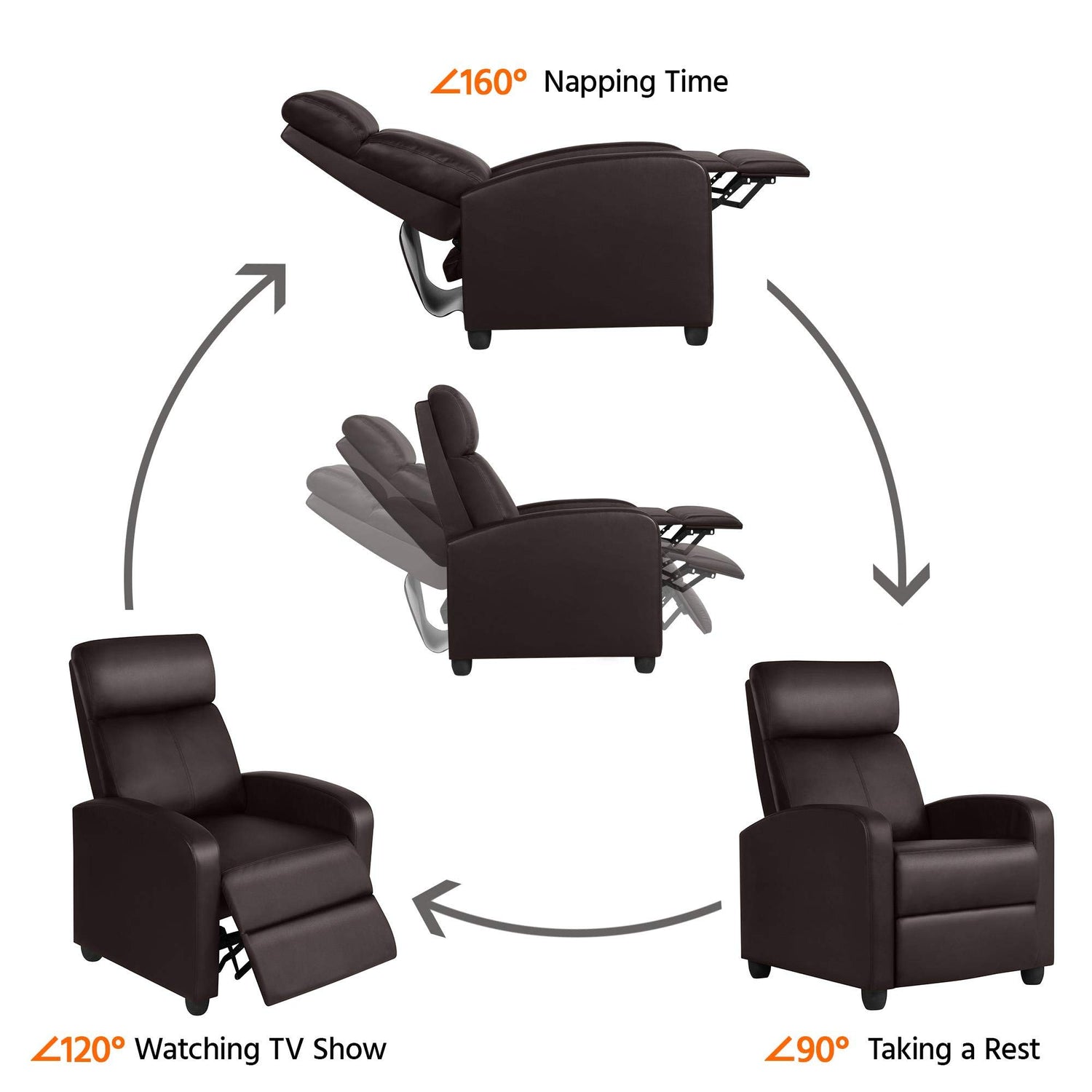 - Sturdy home-use recliner: This adjustable recliner is constructed of strong composite wood frame, naturally soft rayon fibers, water-resistant and easy-to-clean PU & PVC leather. The robust recliner sofa is capable of holding up 120 kg/265 lb.