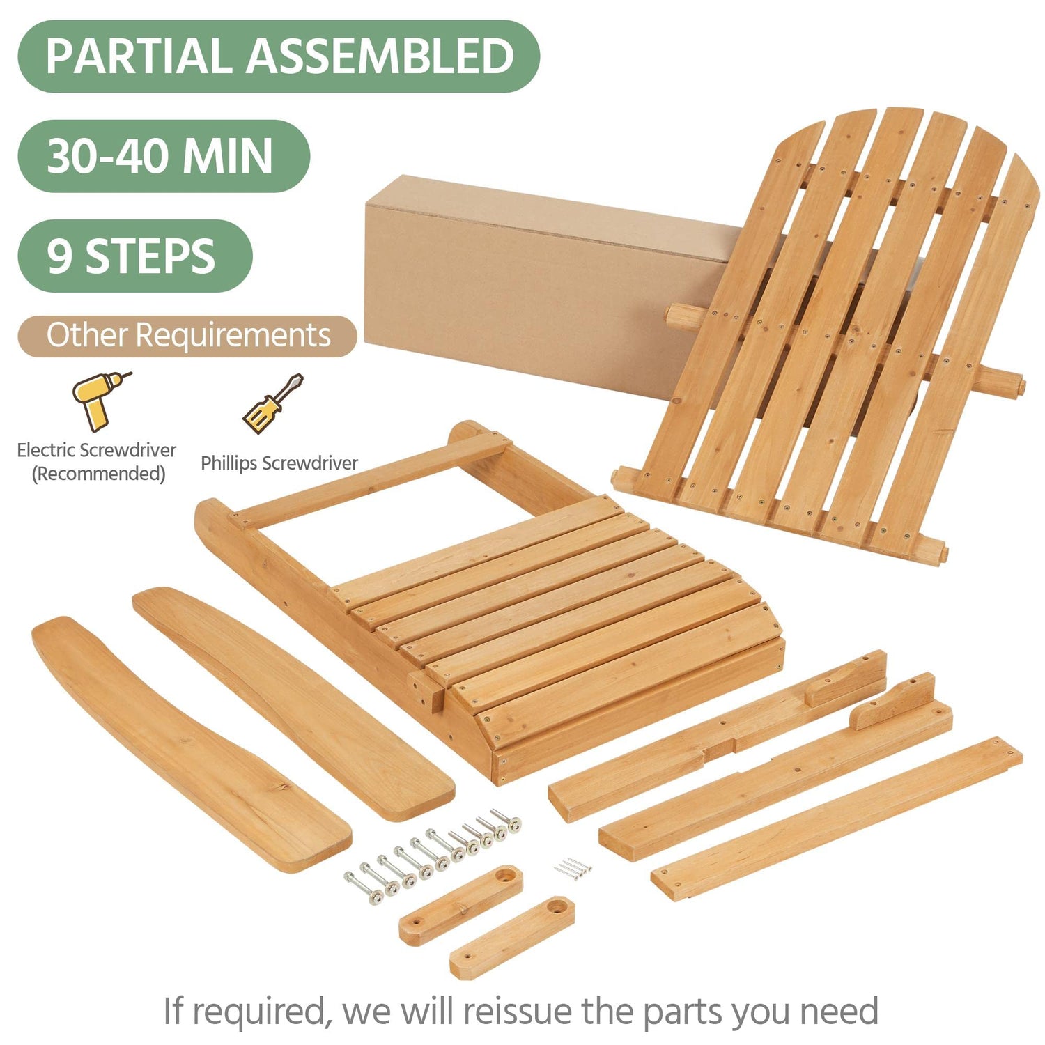 - Solid & Stable, Worry-free Pleasant: Every two components of this patio chair are strongly connected through fasteners. Meanwhile, the whole body of this solid wood lounge is designed in a three-legged structure. This Adirondack chair is super stable and sturdy.