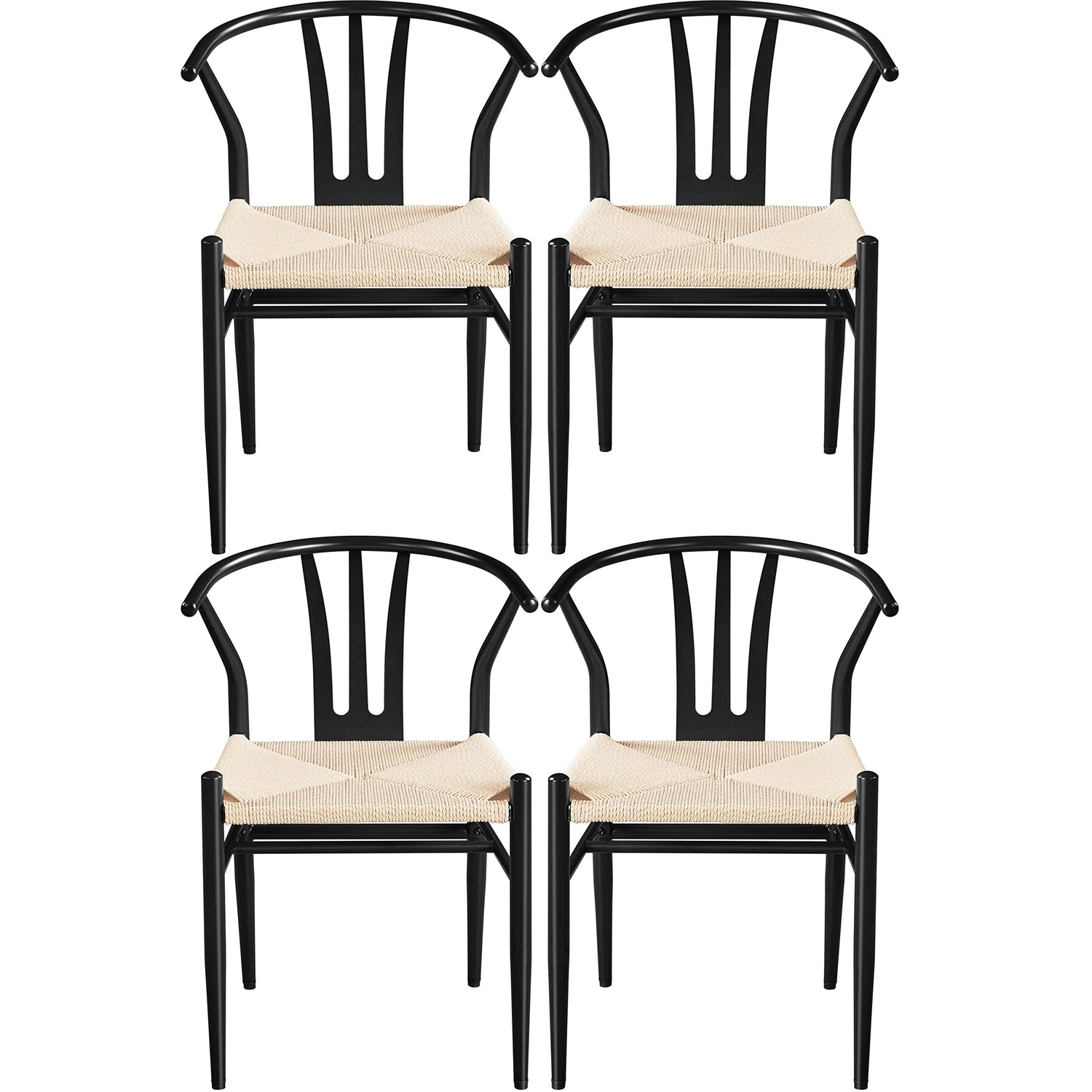 Topeakmart Weave Dining Chair Weave Modern Chair Metal Frame Accent Chair Weave Arm Chairs Set of 4,Black