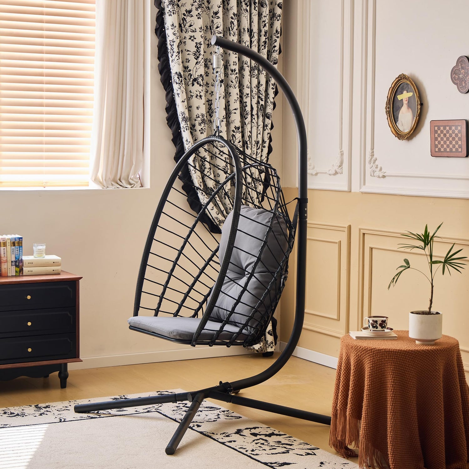 - Portable & Easy Assembly:Featuring a compact folding design, this hanging chair is a must - have for those who are passionate about creating backyard oases or patio setups. It's convenient for storage and camping. The stand can be easily assembled and disassembled with the included hardware and instructions. Equipped with a safety strap, it can also be used as a hammock with a stand for outdoor use, offering flexibility in outdoor furniture arrangements.