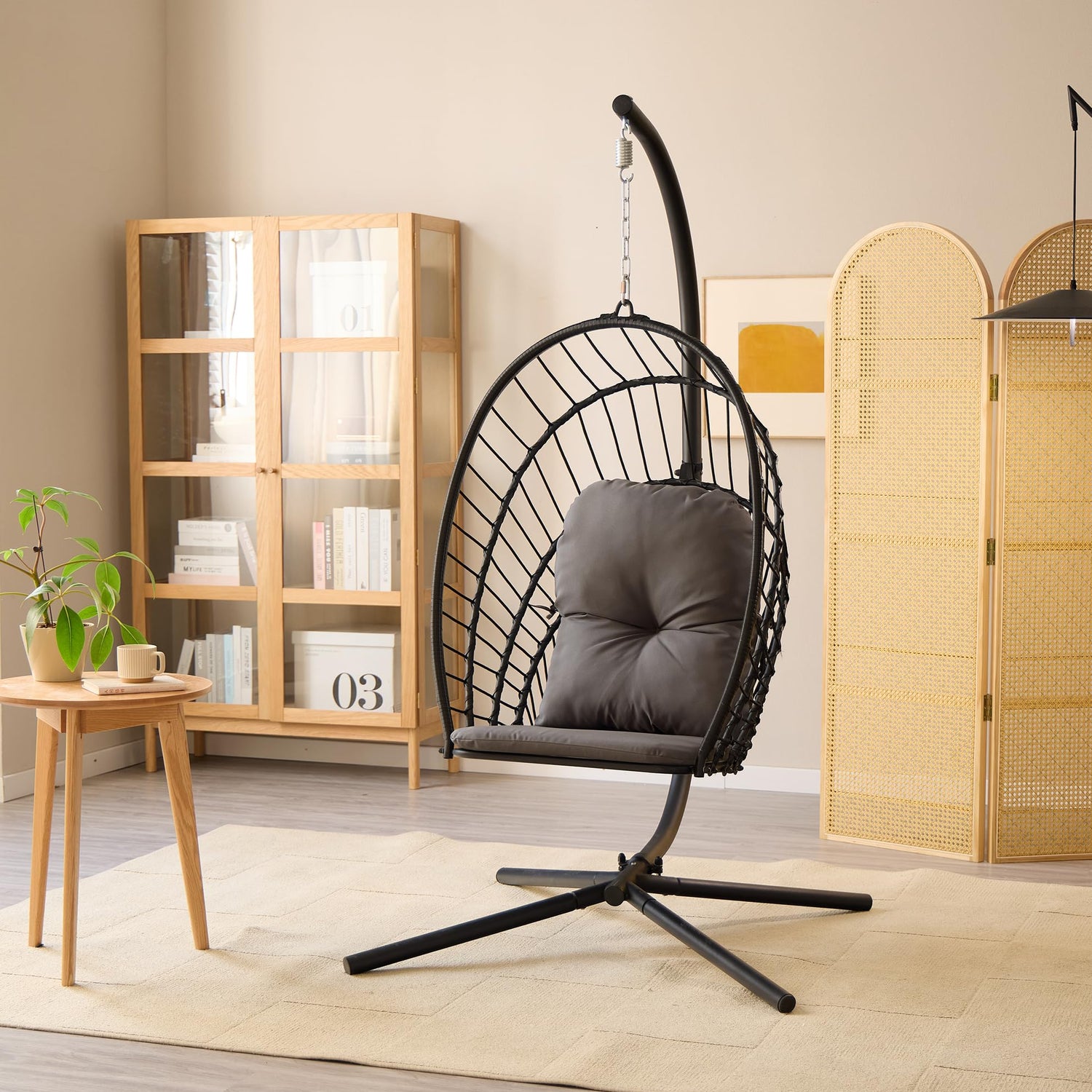 Topfuca Indoor/Outdoor Egg Hanging Chair with Stand - Patio Wicker Swing Hammock Chair. 350lbs Capacity, Cushioned. Ideal for Bedroom, Balcony, Porch, Garden. Versatile Swing Chair for All Spaces